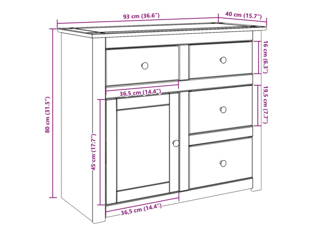 - Rozměry: 93 x 40 x 80 cm (Š x H x V)