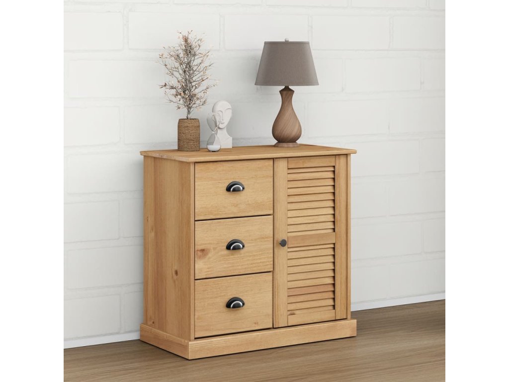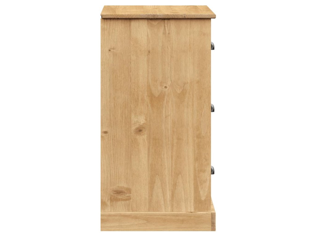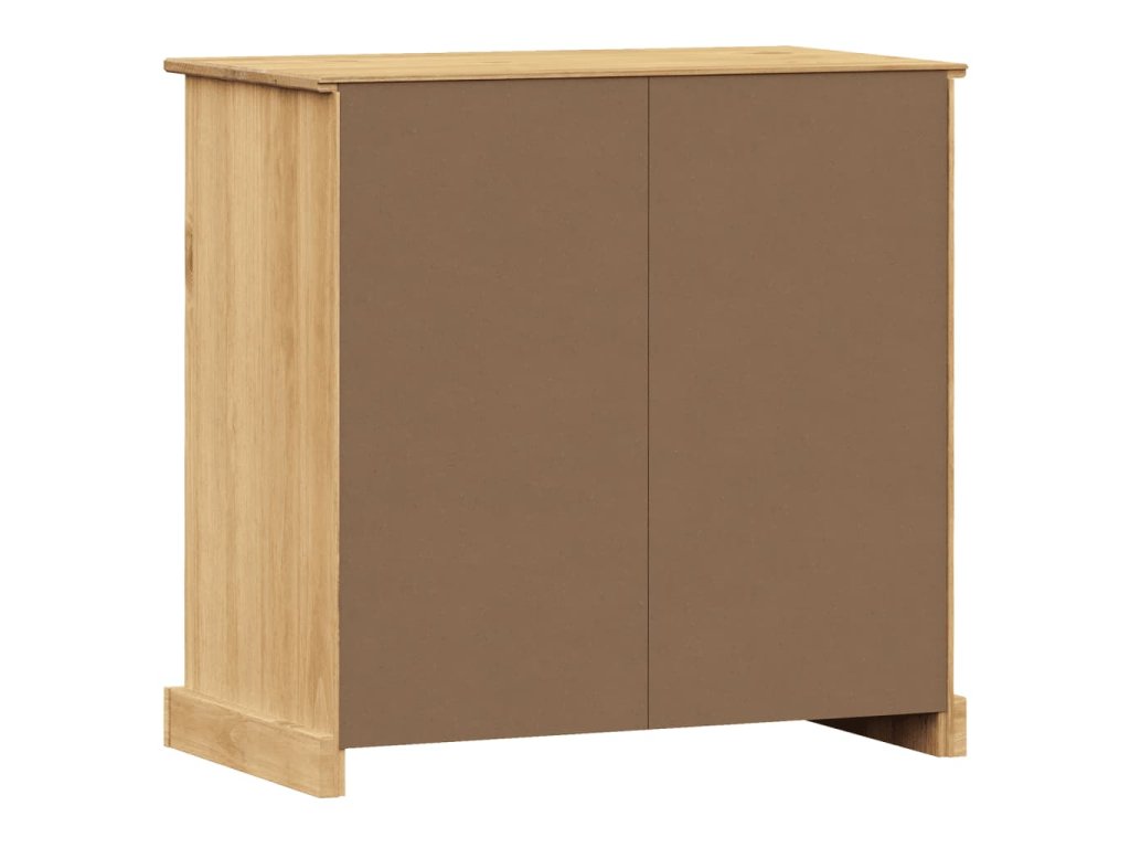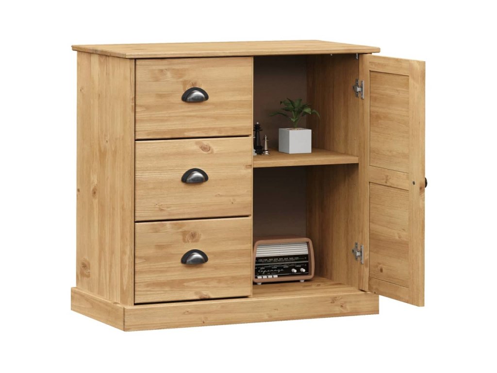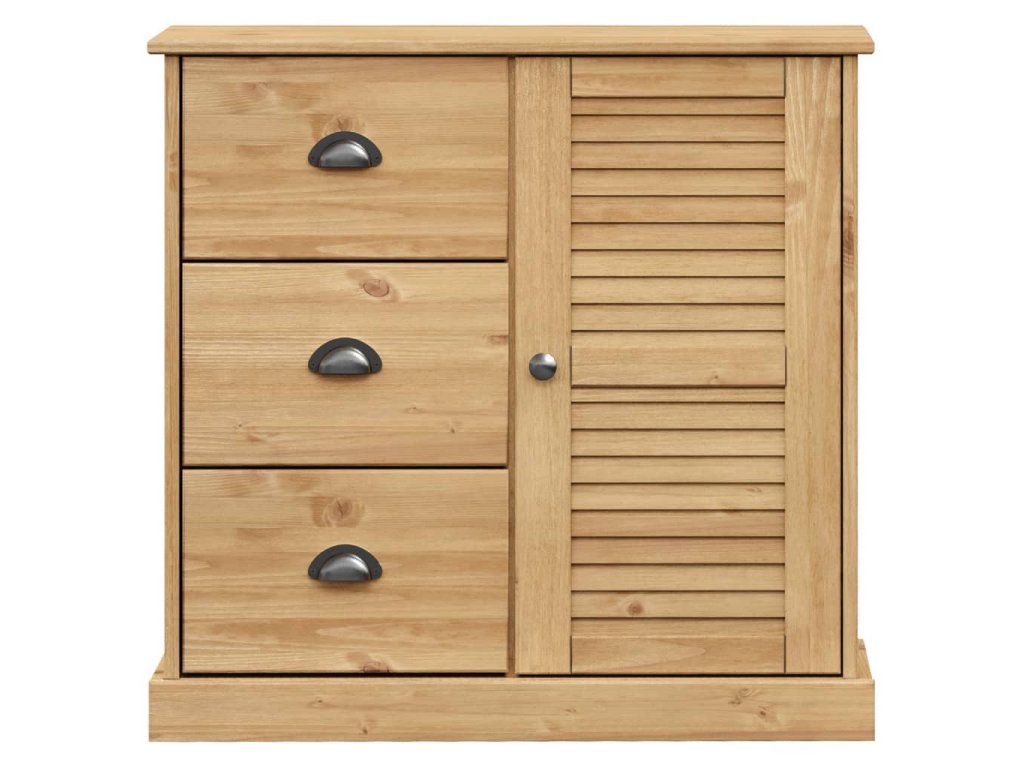 - Masivní borové dřevo: Masivní borové dřevo je krásný přírodní materiál. Borové dřevo má rovnou kresbu a obsahuje suky, které materiálu dodávají jeho charakteristický, rustikální vzhled. Skříňka je vyrobena z masivního borového dřeva a je odolná a robustní.