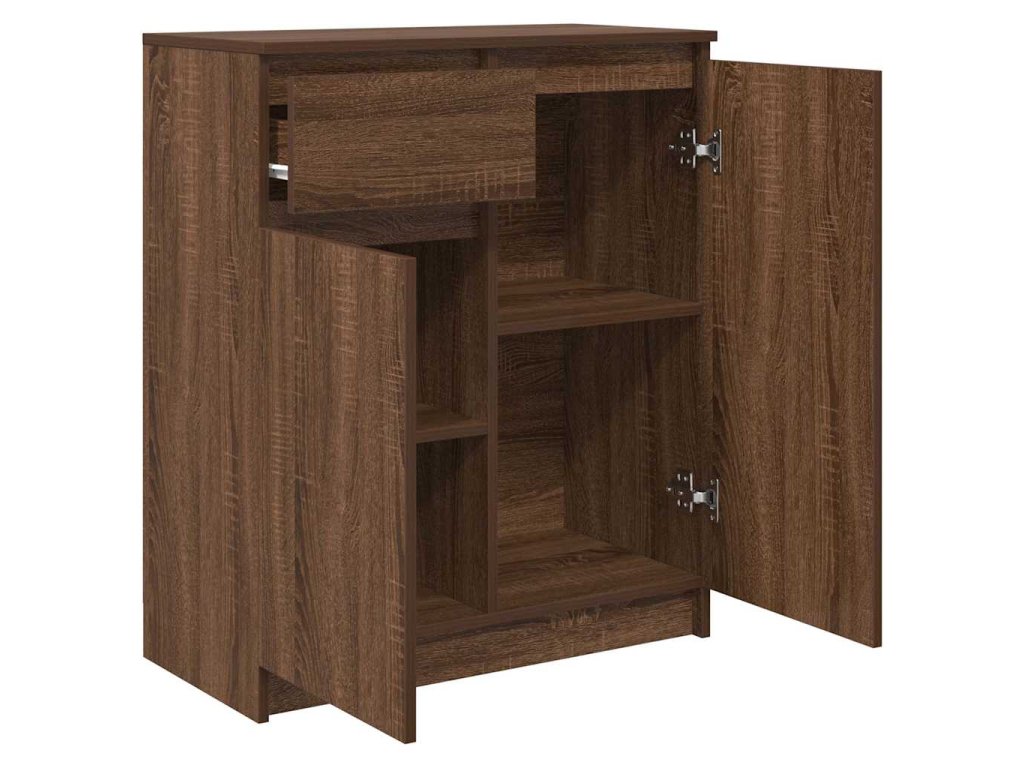 - Dostatek úložného prostoru: Příborník je vybaven dvířky, dvěma policemi a zásuvkou, které zajistí, že vaše věci budou dobře uspořádané a uklizené. Dvířka skříňky poskytují uzavřený úložný prostor, který chrání vaše věci před zraky, zatímco zásuvka nabízí další prostor pro snadný přístup k různým předmětům. Vnitřní police pomáhají třídit váš majetek, zlepšují organizaci a čistotu.