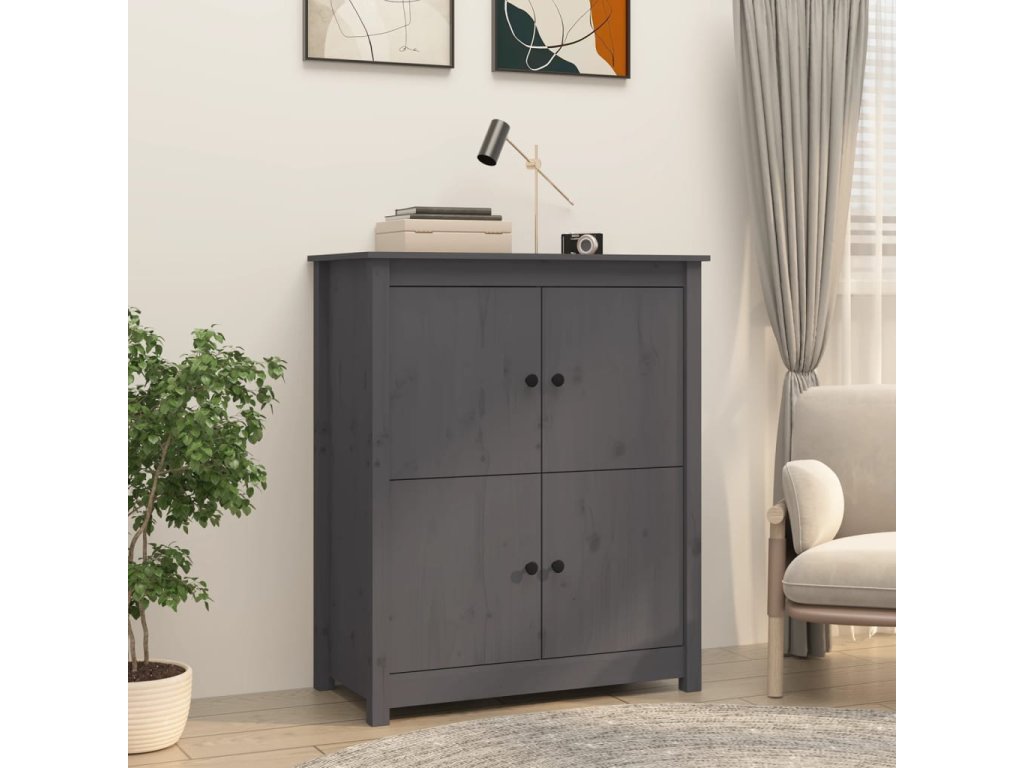 Tento dřevěný příborník s minimalistickým designem je nejen funkčním, ale i výrazně dekorativním doplňkem vašeho současného interiéru.