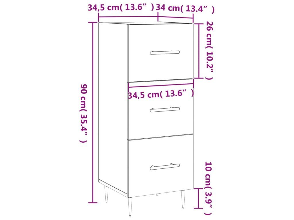 - Dostatek úložného prostoru: Příborník je navržen se 3 zásuvkami, ve kterých budete mít vaše věci uspořádané a neustále po ruce.