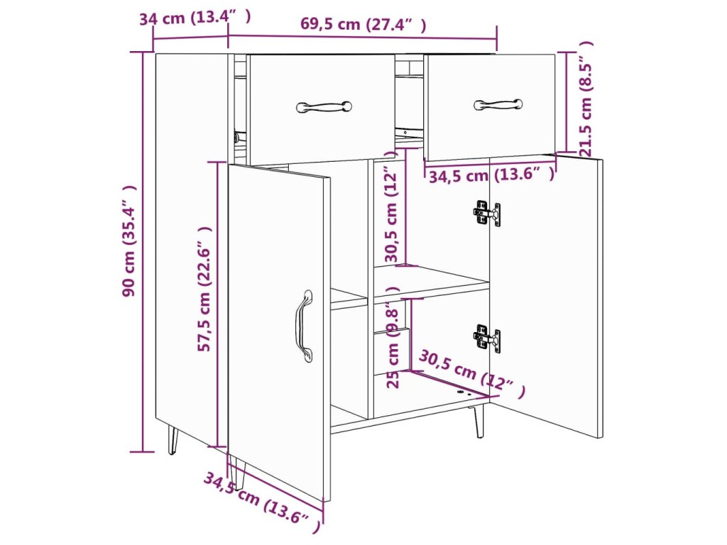 - Rozměry: 69,5 x 34 x 90 cm (Š x H x V)