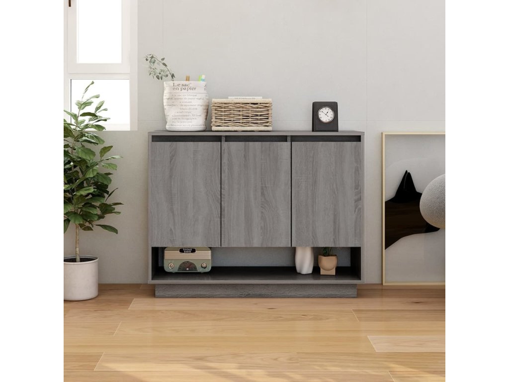Tato úložná skříňka se vyznačuje robustní a odolnou konstrukcí. Skříňka se 3 dvířky a spodní otevřenou přihrádkou poskytuje spoustu prostoru pro uložení knih, multimediálních zařízení a dalších věcí. Robustní horní deska je ideální pro vystavení dekorativních předmětů, fotorámečků nebo pokojových rostlin.