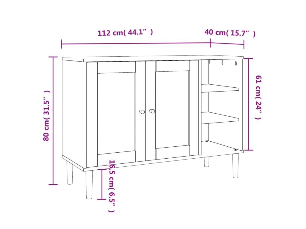 Tento dřevěný příborník s minimalistickým kouzlem je navržený tak, aby vyhovoval vašim úložným požadavkům a zároveň dodal vašemu pokoji jedinečný vzhled.