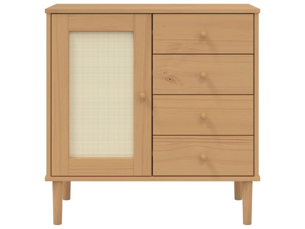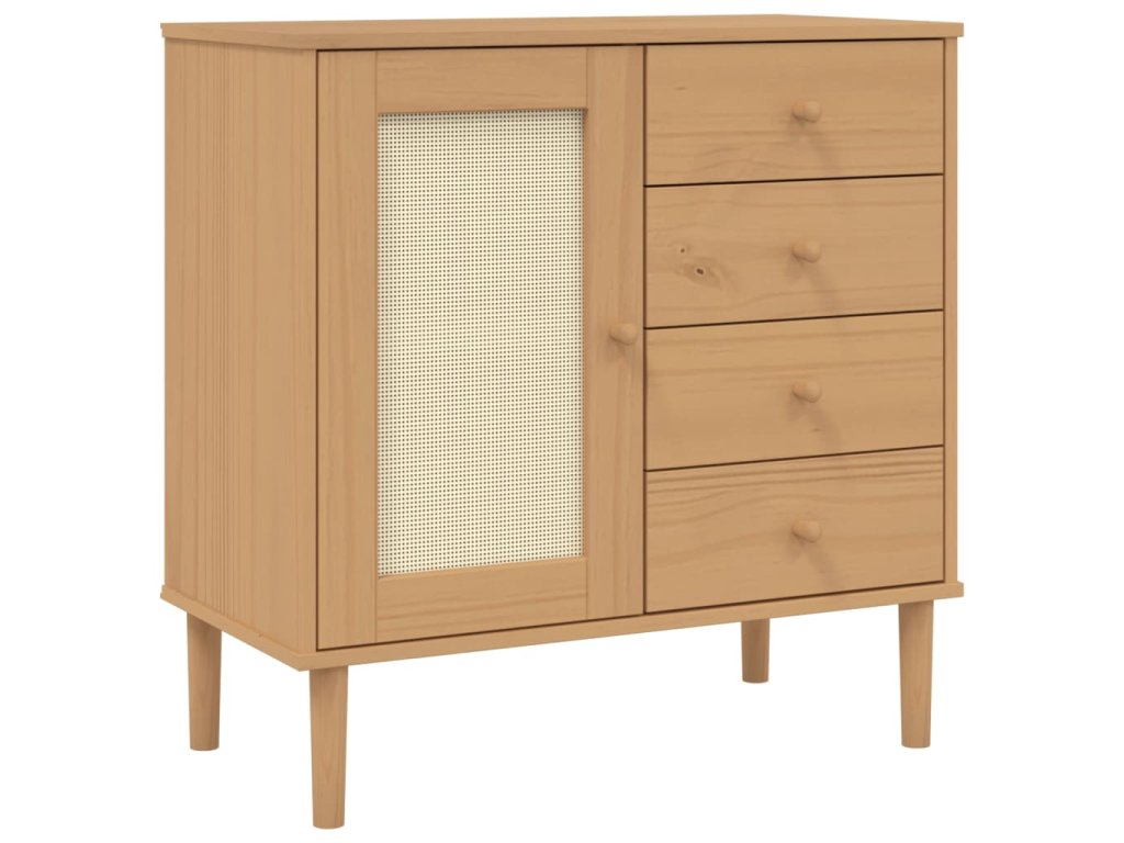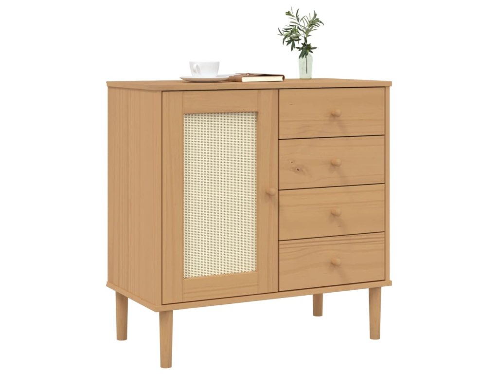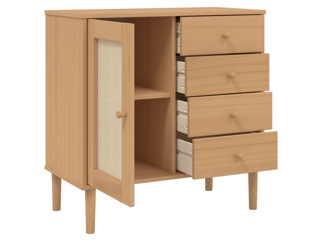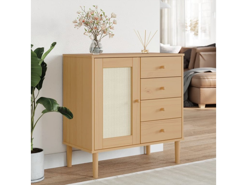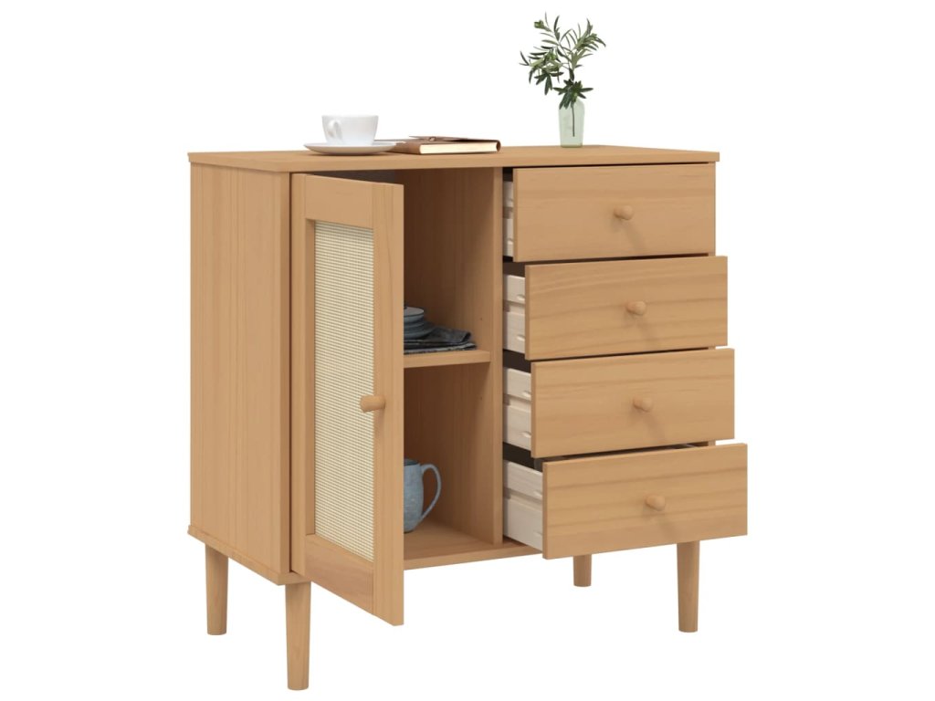 Tento dřevěný příborník s minimalistickým kouzlem je navržený tak, aby vyhovoval vašim úložným požadavkům a zároveň dodal vašemu pokoji jedinečný vzhled.