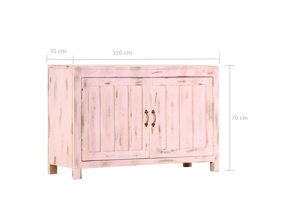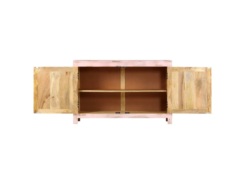 Skříňka je ručně vyrobená z masivního mangovníkového dřeva, které je stabilní, odolné a krásné, a řemeslné zpracování přispívá k jejímu velkolepému retro stylu. Každá fáze výrobního procesu se provádí s největší péčí, ať už se jedná o leštění, natírání nebo lakování. Zručné řemeslné zpracování a krásná kresba dřeva propůjčuje každému kusu nábytku jeho jedinečný a od všech ostatních lehce odlišný vzhled. Tento příborník se 2 dvířky nabízí spoustu úložného prostoru pro vaše každodenní nezbytnosti.