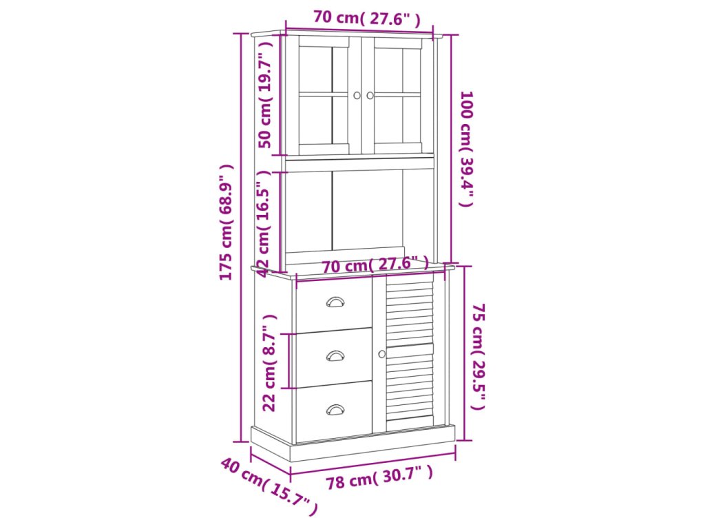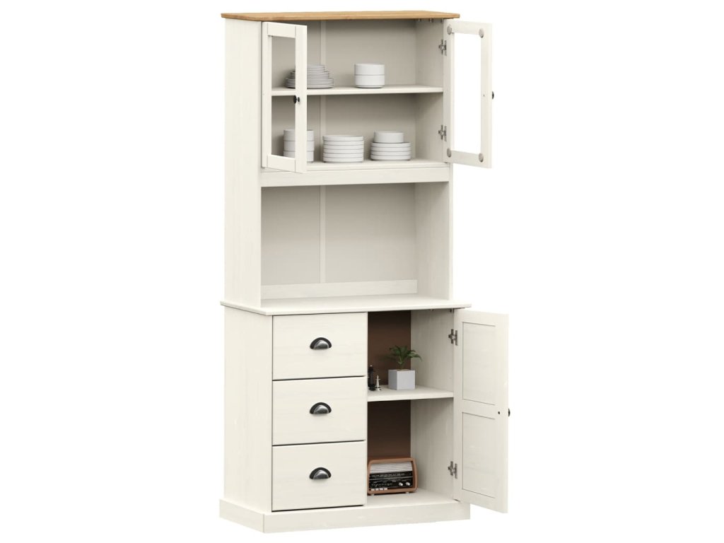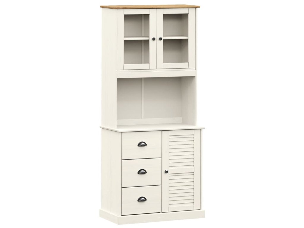 - Spousta úložného prostoru: Skříň je vybavena zásuvkami a přihrádkami, takže vám poskytne spoustu úložného prostoru, kam si můžete přehledně uschovat vaše šálky, nádobí a drobné dekorativní předměty.