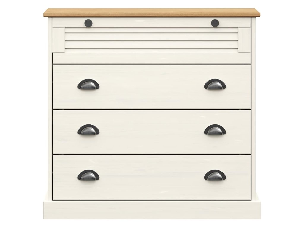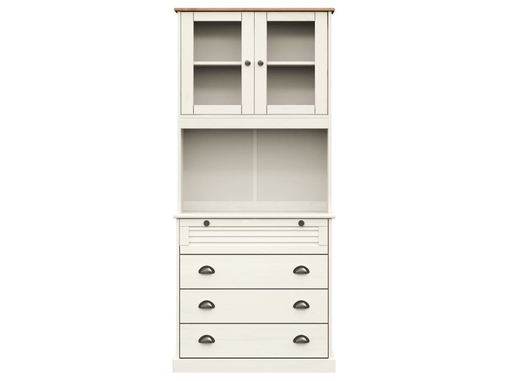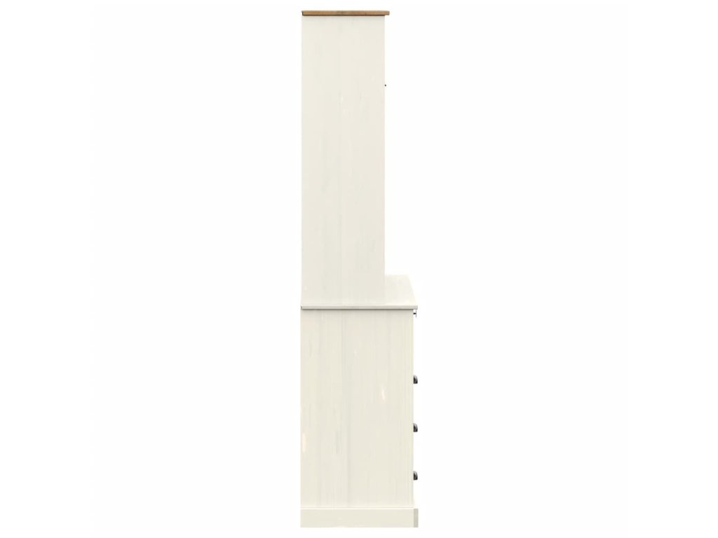 - Masivní borové dřevo: Masivní borové dřevo je krásný přírodní materiál. Borové dřevo má rovnou kresbu a obsahuje suky, které materiálu dodávají jeho charakteristický, rustikální vzhled. Příborník je vyroben z masivního borového dřeva, je tedy odolný a robustní.