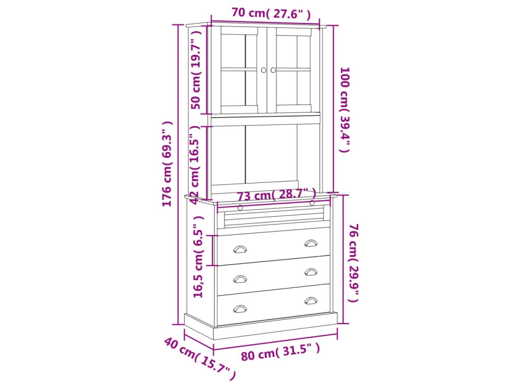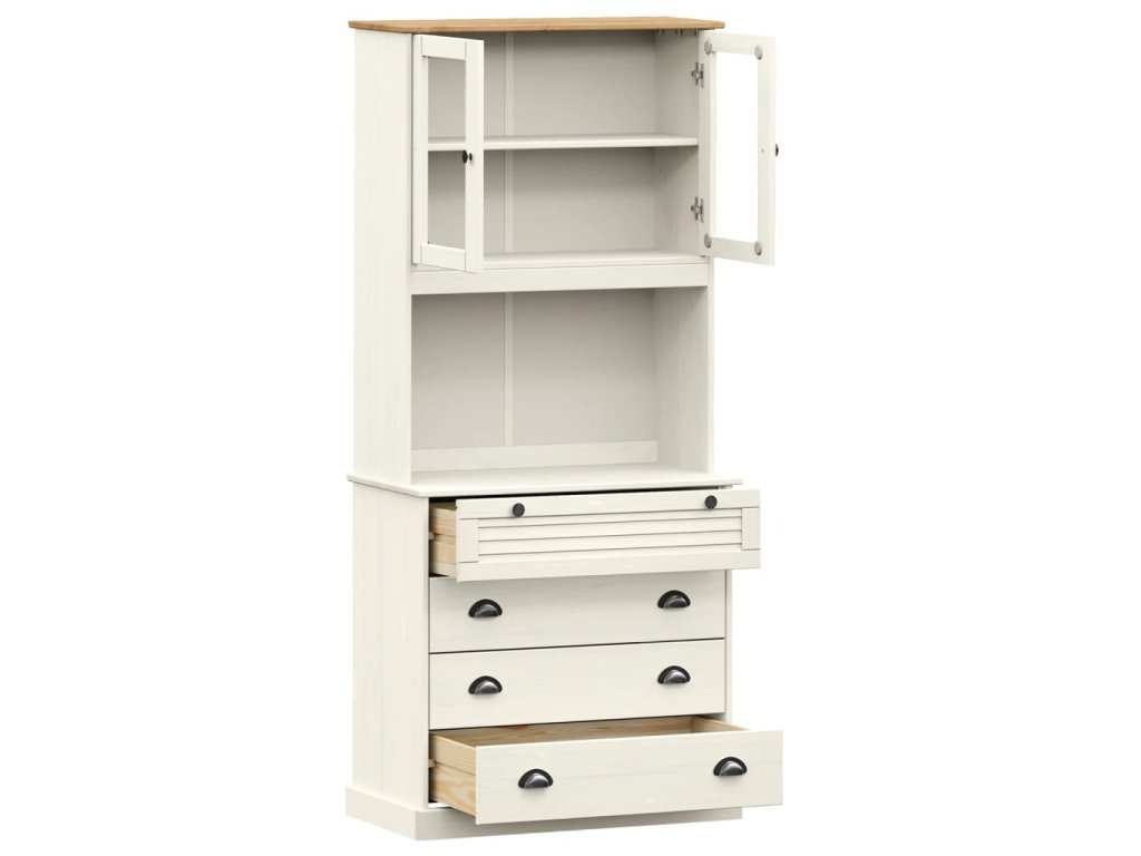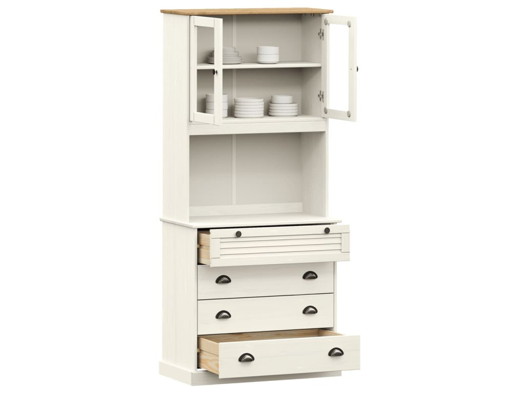 - Spousta úložného prostoru: Skříň je vybavena zásuvkami a přihrádkami, takže vám poskytne spoustu úložného prostoru, kam si můžete přehledně uschovat vaše šálky, nádobí a drobné dekorativní předměty.