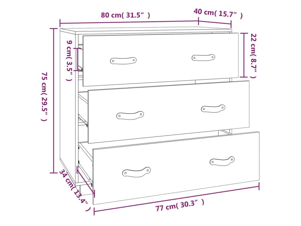 - Rozměry zásuvky: 77 x 34 x 22 cm (Š x H x V)