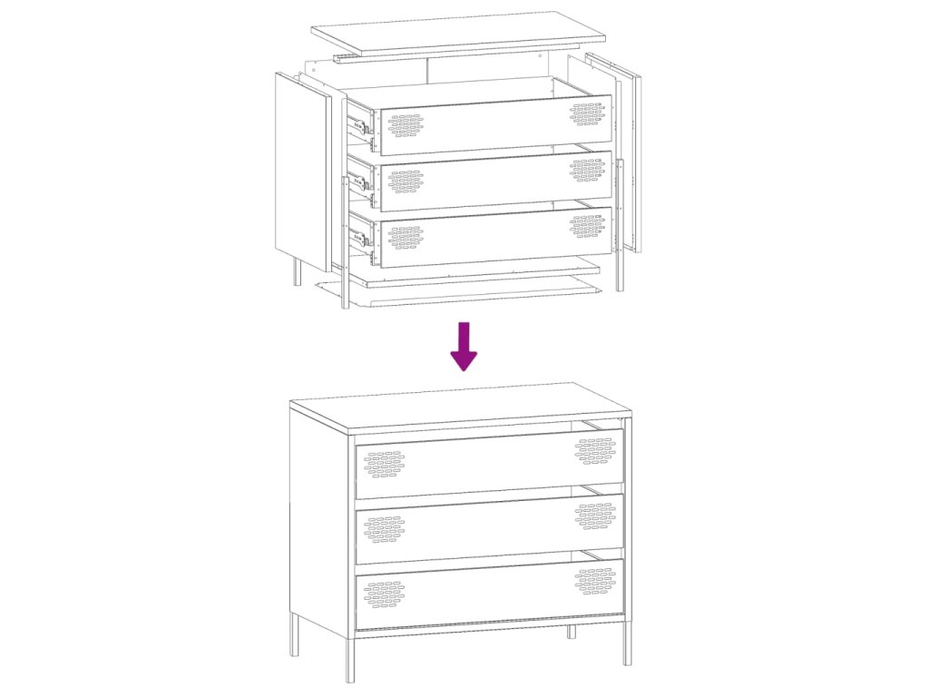 - Snadná údržba: Díky hladkému povrchu se příborník snadno čistí vlhkým hadříkem a vyžaduje minimum údržby.