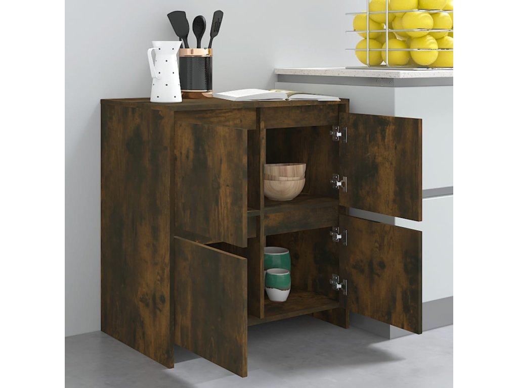 Odkládací skříňka je vybavena 4 dvířky, poskytuje tedy spoustu úložného prostoru na vaše knihy, multimediální zařízení a další věci. Robustní horní deska se skvěle hodí k vystavení dekorativních předmětů, fotorámečků a pokojových rostlin. Úložnou skříňku navíc snadno očistíte vlhkým hadříkem.