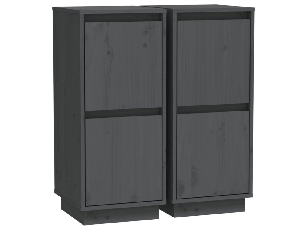 Tato odkládací skříňka je vyrobena z masivního borového dřeva a MDF, které zajišťuje její pevnou a odolnou konstrukci. Skříňka se 2 dvířky poskytuje spoustu prostoru pro uložení knih, multimediálních zařízení a dalších věcí. Robustní horní deska je ideální pro vystavení dekorativních předmětů, fotorámečků nebo pokojových rostlin. Sada skříněk s dvířky stojí na soklu.