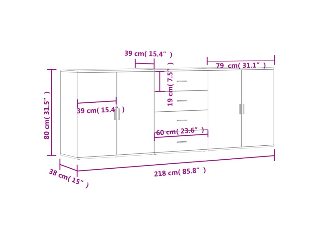 - 2x příborník: 79 x 38 x 80 cm (Š x H x V)