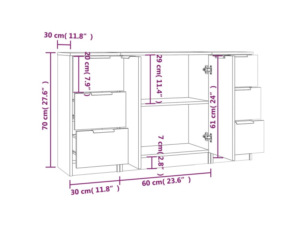 - Rozměry (příborník se 3 zásuvkami): 30 x 30 x 70 cm (Š x H x V)