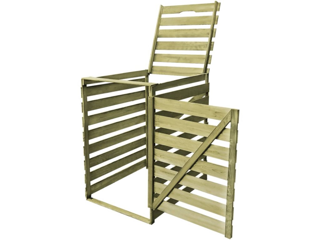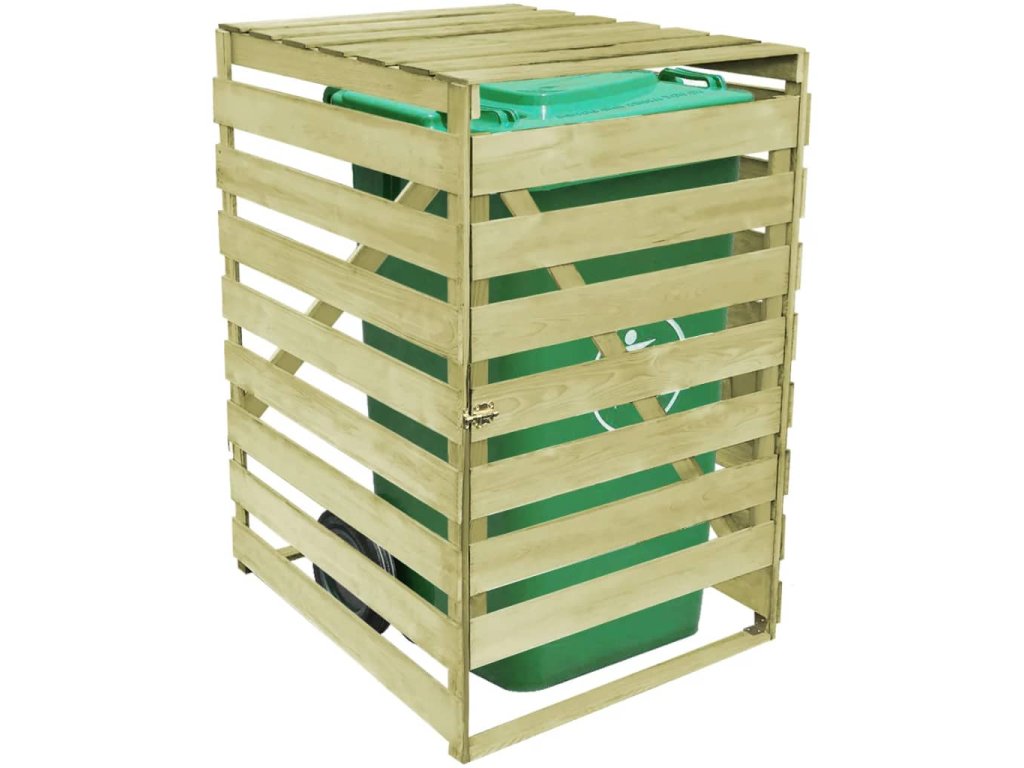 Tato kůlna na popelnice je vyrobená ze zeleně impregnovaného borového dřeva, je velmi robustní, odolná vůči hnilobě a má dlouhou životnost. Vejde se do ní 240l popelnice o maximální výšce 115 cm. Přístřešek hezky doplní vzhled vaší zahrady. Poznámka: Popelnice není součástí balení.