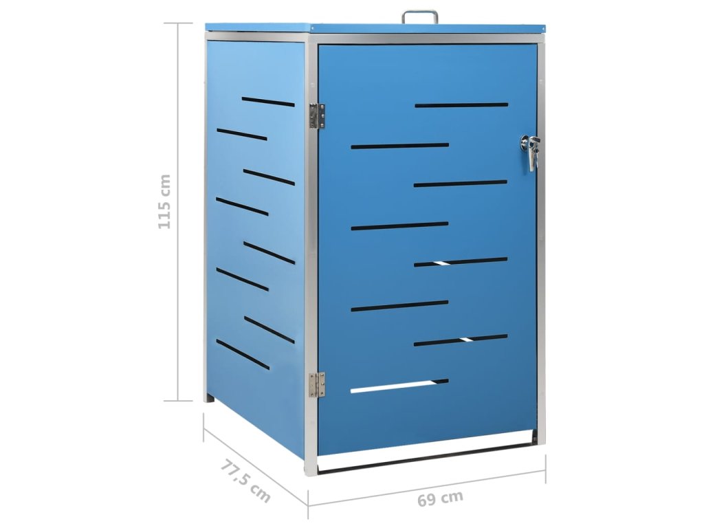 Tento přístřešek na popelnice je vyroben z pozinkovaného ocelového panelu a rámu z nerezové oceli, takže je mimořádně robustní a odolný proti korozi. Dutá konstrukce umožňuje cirkulaci vzduchu a zabraňuje, aby v popelnicích vznikal nepříjemný zápach. Uzamykací systém zároveň zajišťuje bezpečné uložení odpadků. Praktické víko a pružiny navíc usnadňují vkládání a vyjímání popelnic.