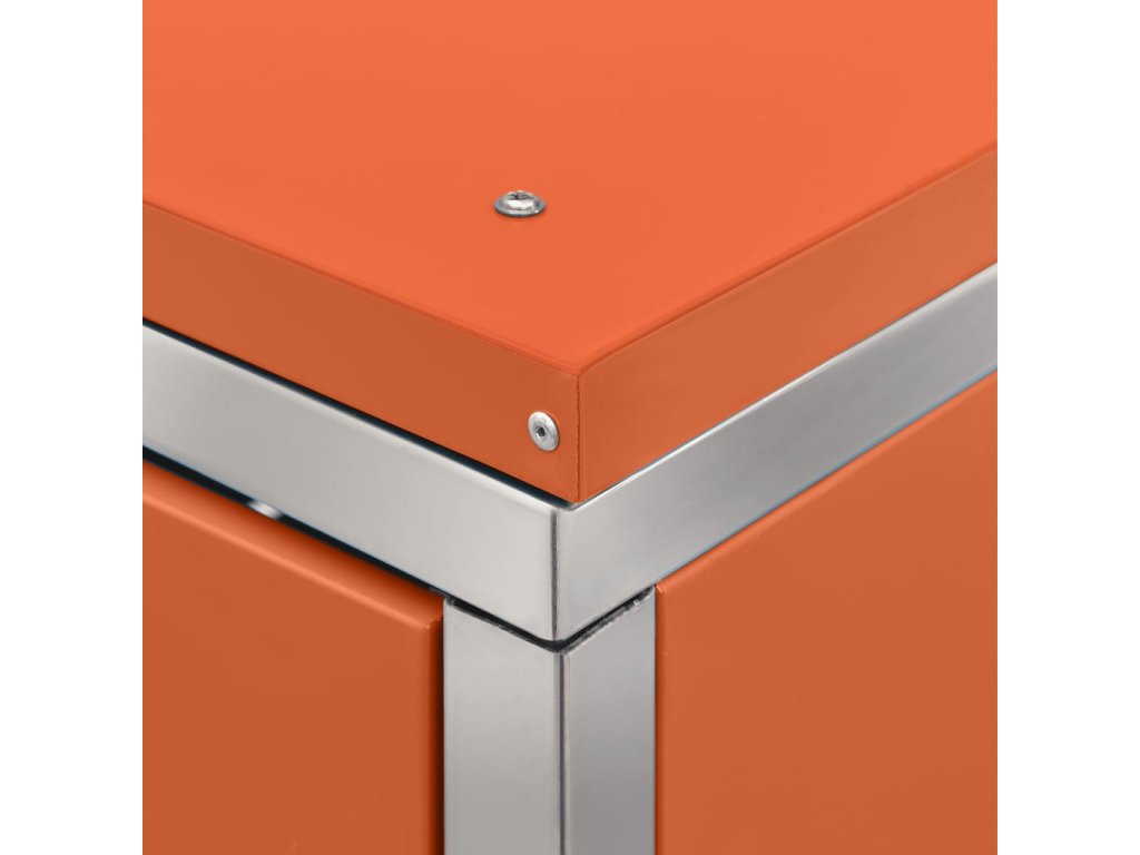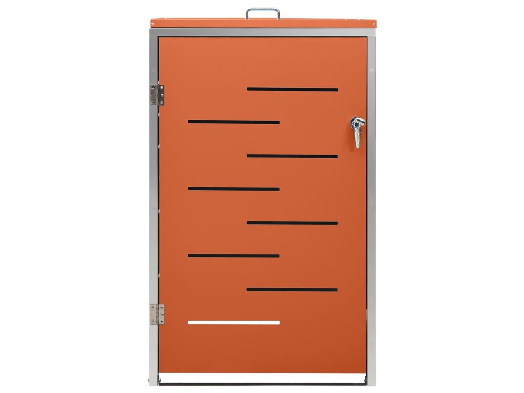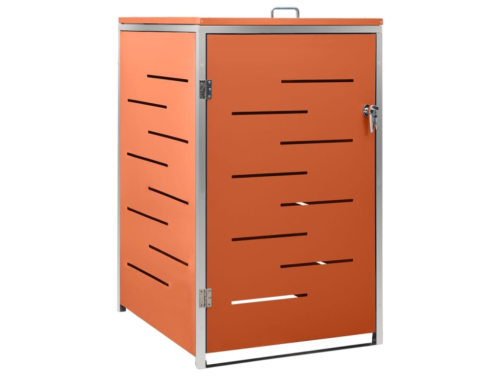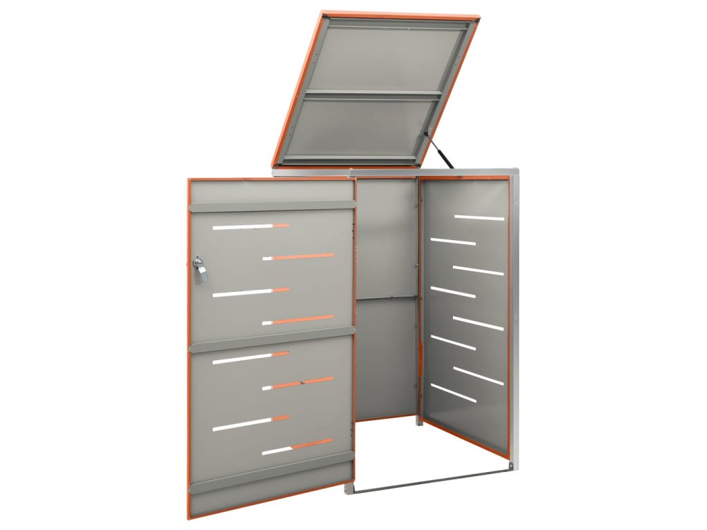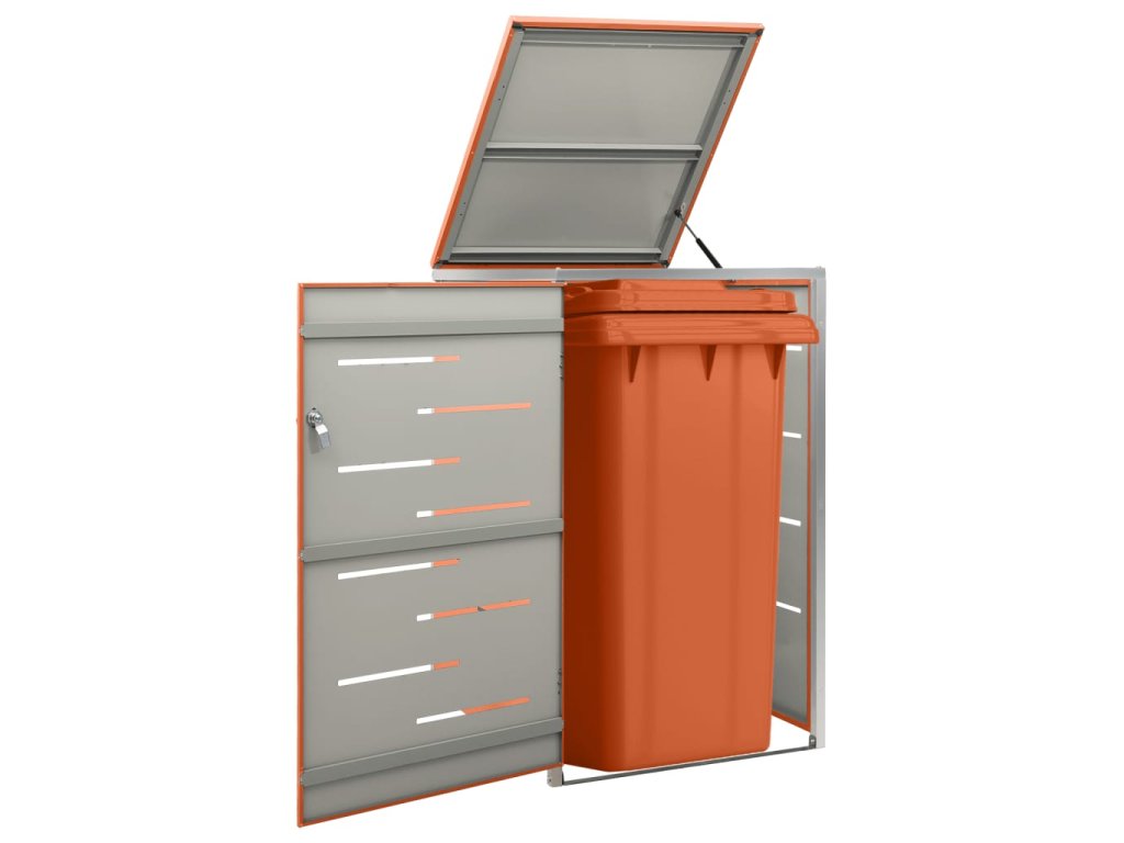 Tento přístřešek na popelnice je vyroben z pozinkovaného ocelového panelu a rámu z nerezové oceli, takže je mimořádně robustní a odolný proti korozi. Dutá konstrukce umožňuje cirkulaci vzduchu a zabraňuje, aby v popelnicích vznikal nepříjemný zápach. Uzamykací systém zároveň zajišťuje bezpečné uložení odpadků. Praktické víko a pružiny navíc usnadňují vkládání a vyjímání popelnic.