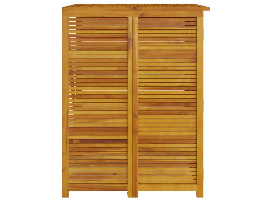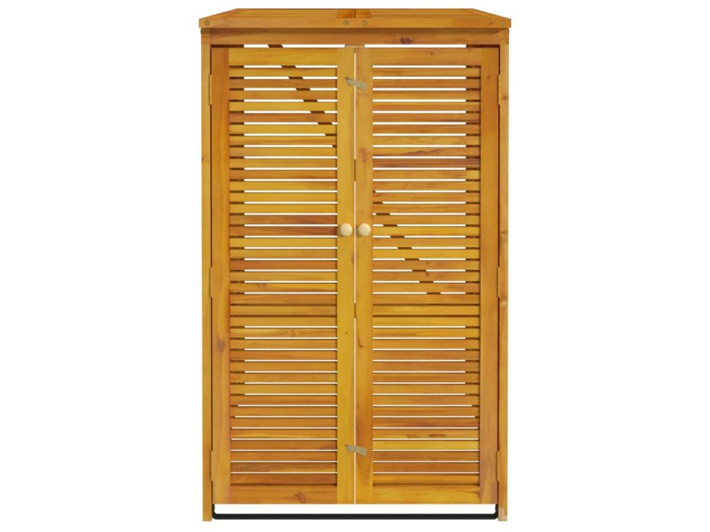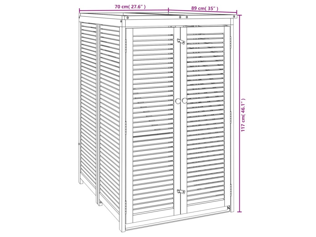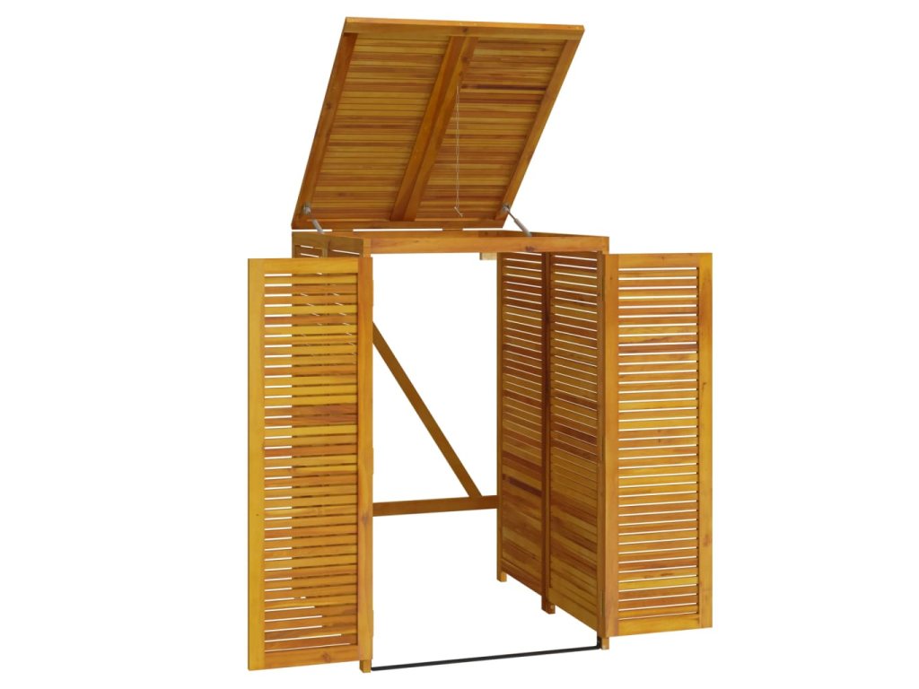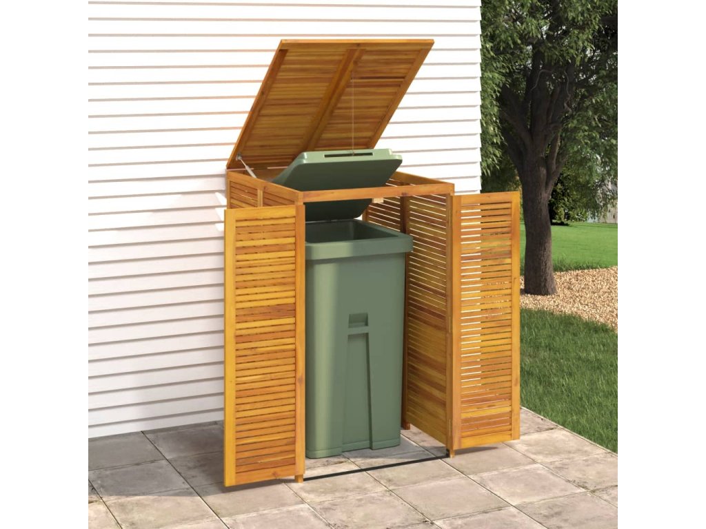 - Praktický design: Přístřešek na popelnici má kovový řetízek spojující víko popelnice s víkem boxu, takže při otevření dřevěného boxu se popelnice automaticky otevře.
