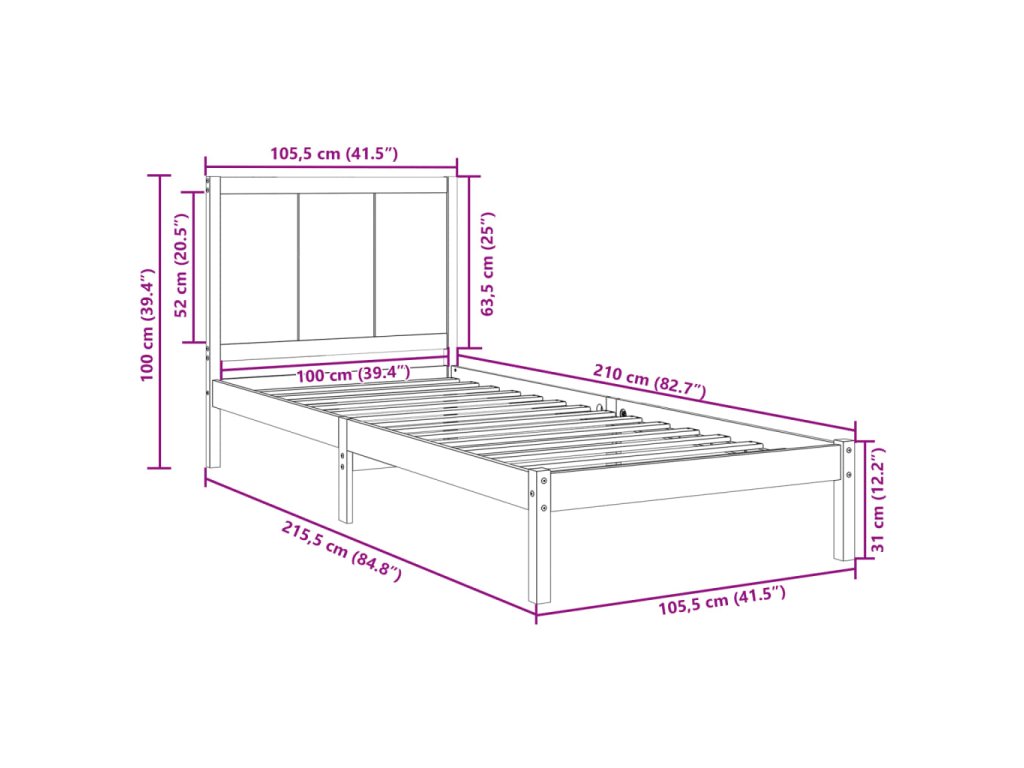- Vhodné rozměry matrace: 100 x 210 cm (Š x D) (matrace není součástí balení)
