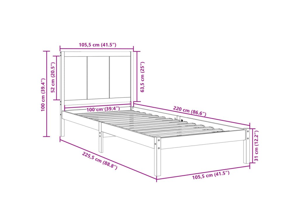 - Vhodné rozměry matrace: 100 x 220 cm (Š x D) (matrace není součástí balení)