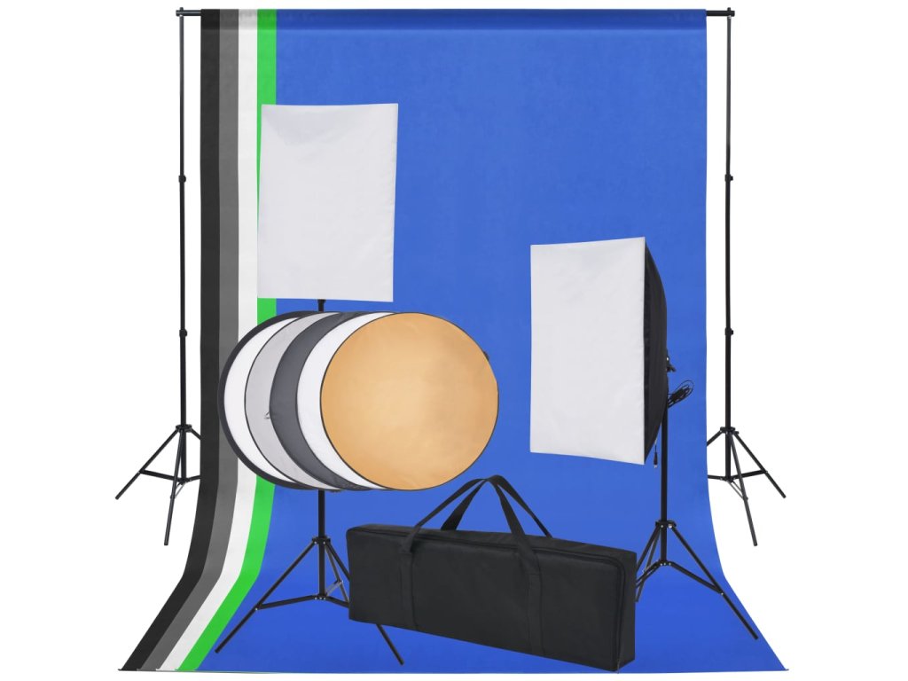 Pozadí a světla jsou nepostradatelnou součástí profesionálního fotografického vybavení. Tato souprava obsahuje kulisu s pěti pozadími a skládací, nastavitelný rám. Krom toho v ní najdete i kompletní osvětlovací soupravu se softboxy, reflektorem a nastavitelnými stativy. To vše se vejde do praktické brašny, která se snadno přenáší pro focení venku.