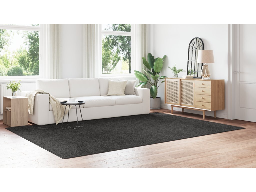 Tento moderní koberec spojuje styl s praktičností, skvělý pro oživení jakéhokoli vnitřního prostoru. Perfektní do obývacích pokojů, ložnic nebo chodeb, jeho nápadná tmavě šedá barva jde ke každému druhu dekoru, zatímco poskytuje dostatečné pokrytí.