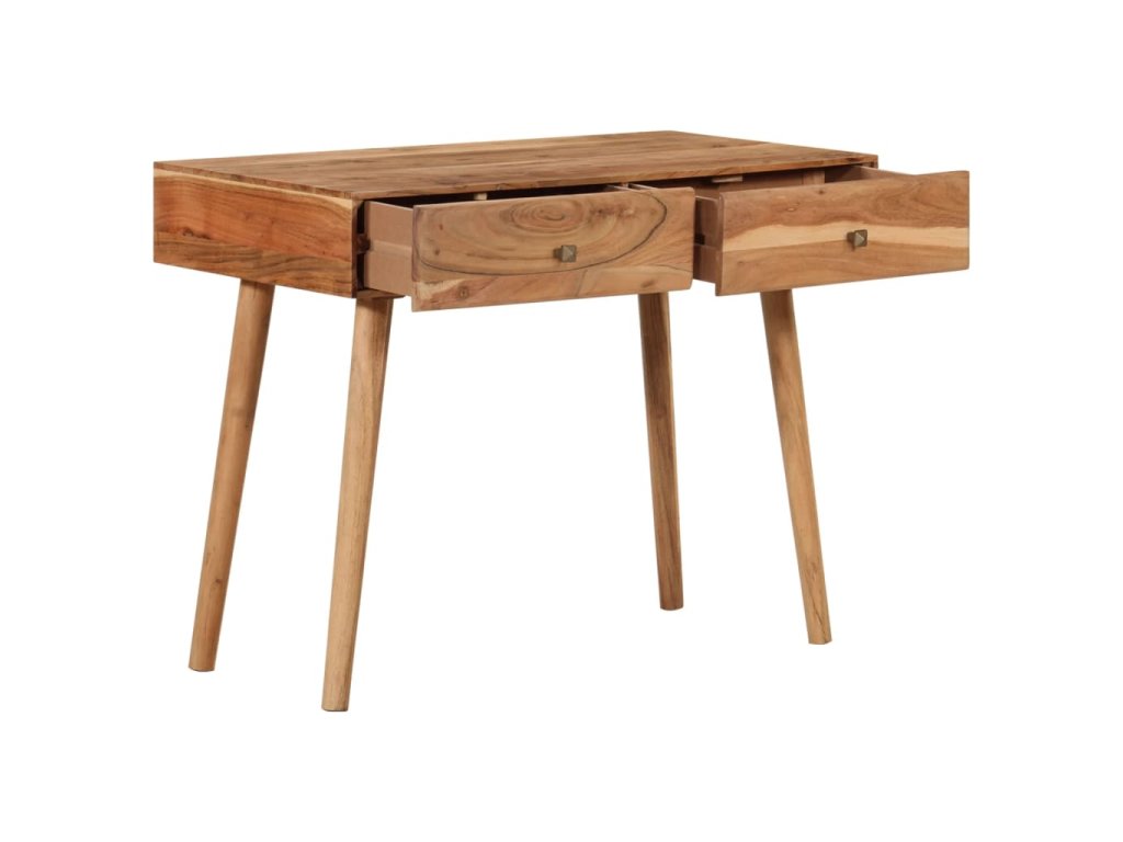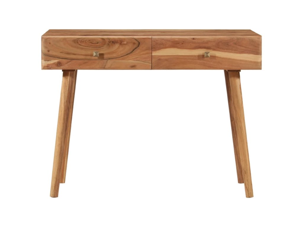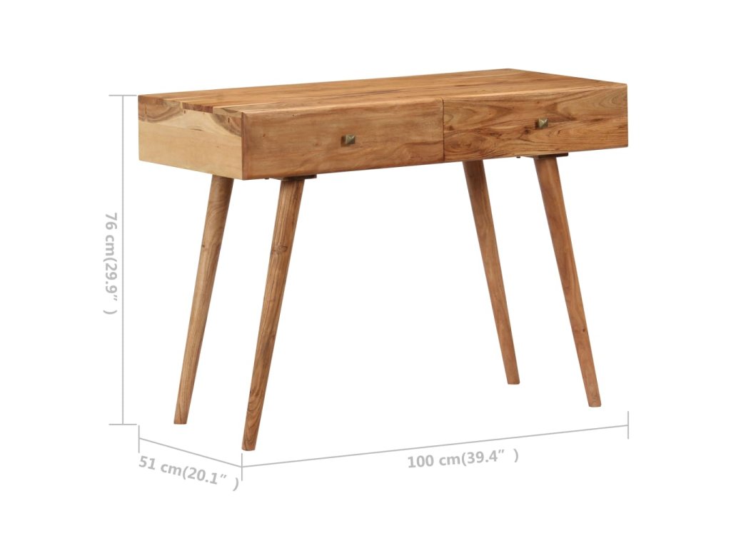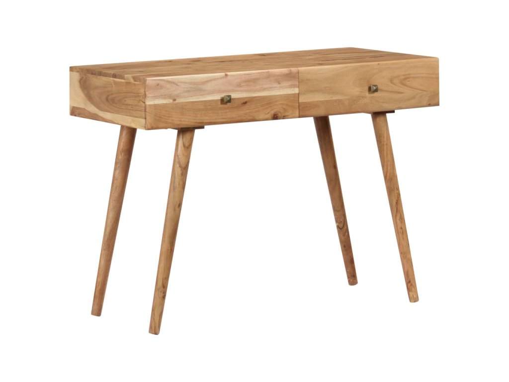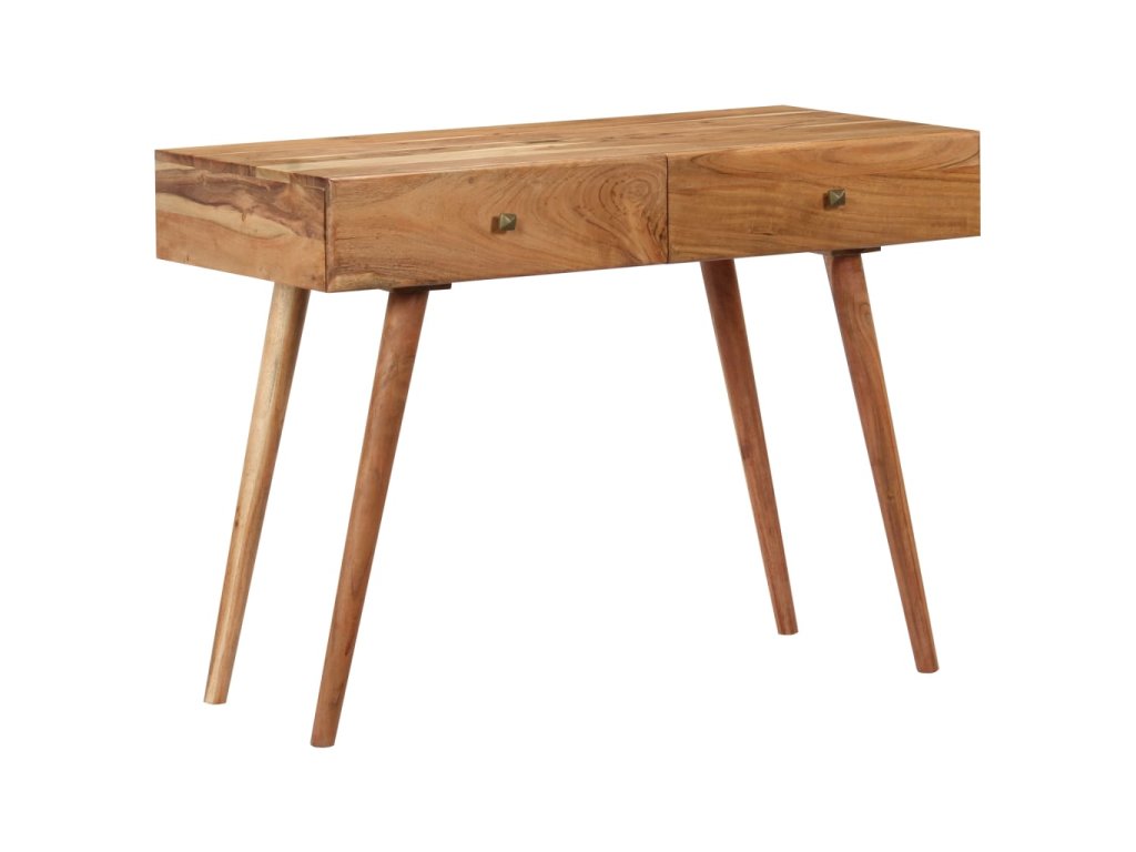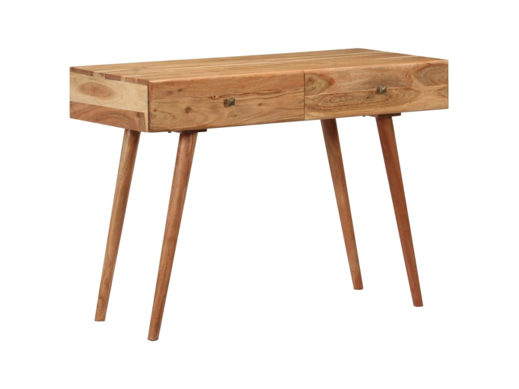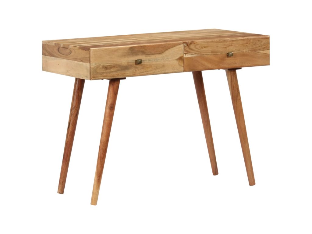 Překrásný vzhled a hřejivý odstín jsou zásluhou masivního akáciového dřeva, ze kterého je psací stůl vyroben. Jeho povrch byl ošetřen lakem medové barvy. Zručné zpracování a nádherná kresba dřeva činí každý kus nábytku zcela jedinečným a lehce odlišným od ostatních. Studijní stůl disponuje 2 zásuvkami, které vám poskytnou místo, kam si můžete ukládat a přehledně uspořádat své sešity, knížky a další různé potřeby. Počítačový stůl vám poslouží také jako konzolový stolek, stolek do předsíně či odkládací stolek.
