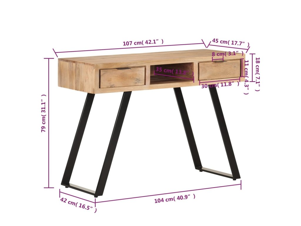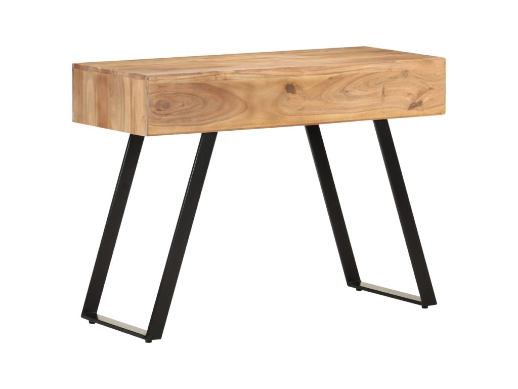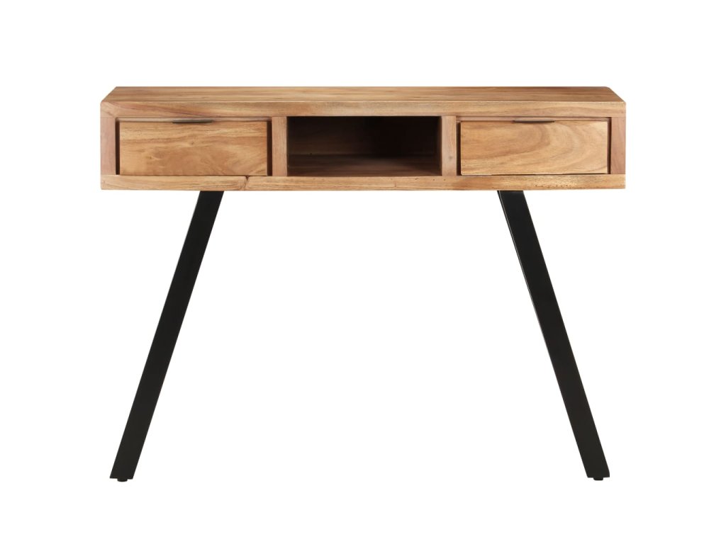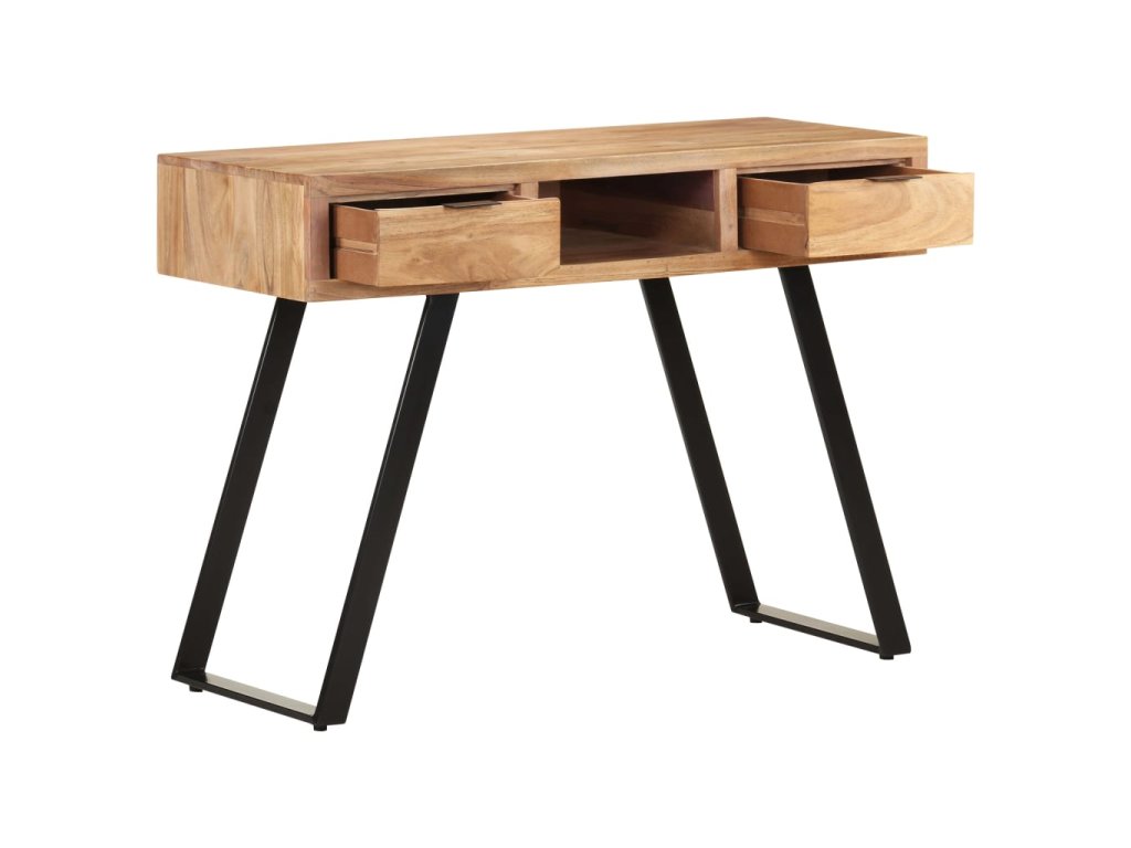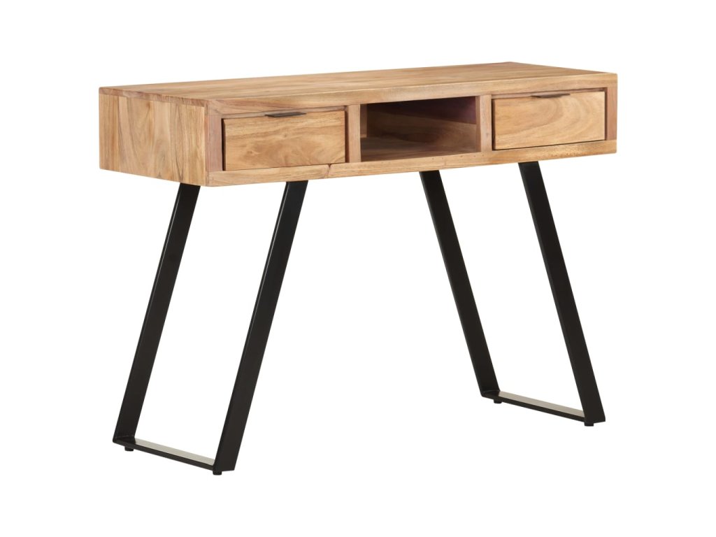 Počítačový stůl je vyrobený z masivní akácie, tvrdého dřeva s hustou strukturou, takže je bytelný a odolný. Ocelový rám zajišťuje extra stabilitu. Dřevěný stůl má dvě zásuvky a přihrádku, nabízí tedy dostatek prostoru pro uložení drobností, jako jsou klíče, notebook a další drobnosti. Kancelářský stůl můžete uplatnit také jako psací stůl nebo konzolový stůl.