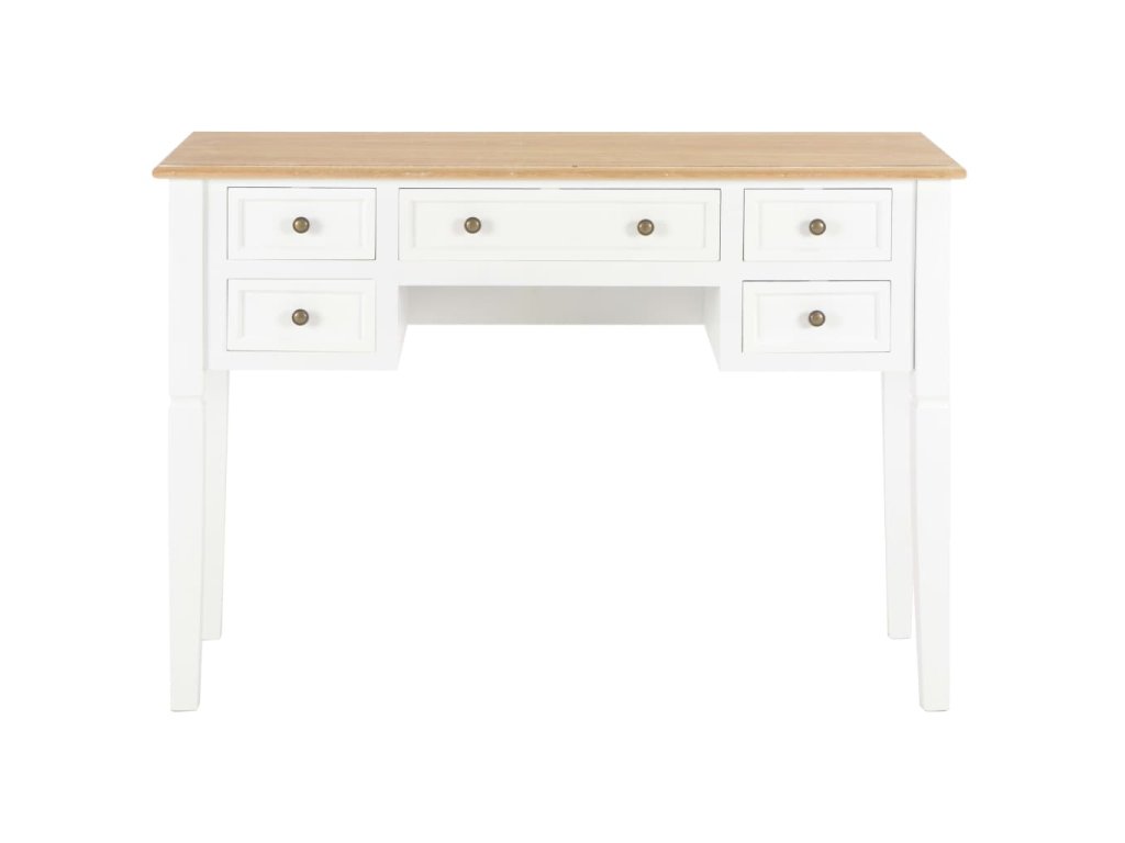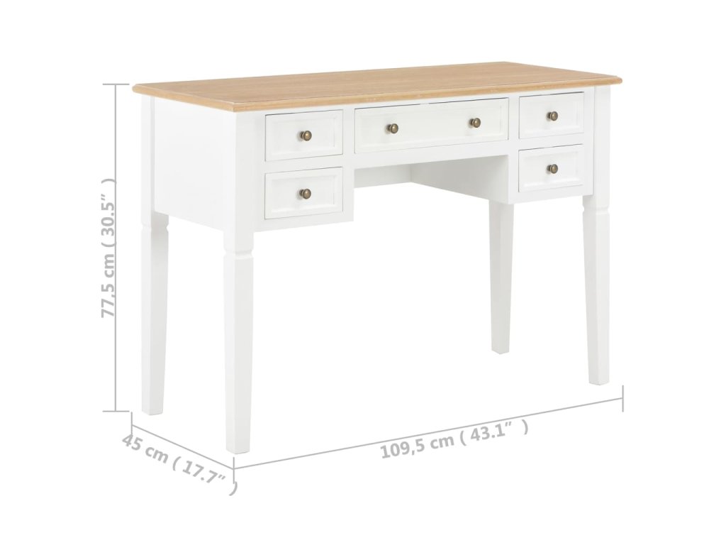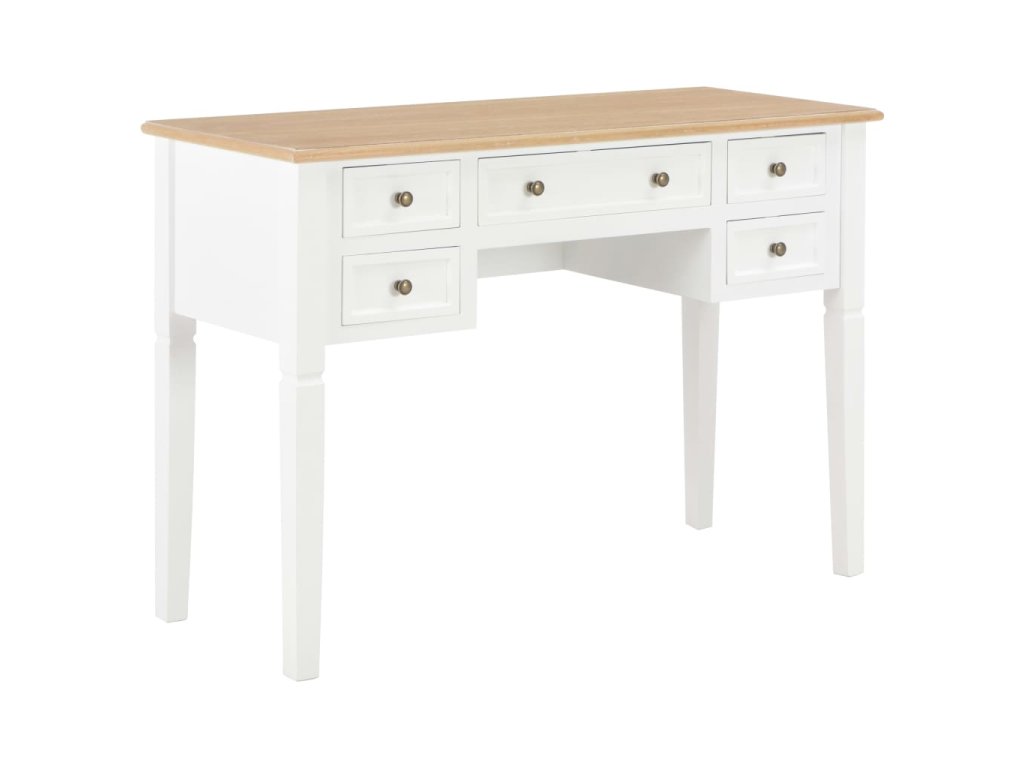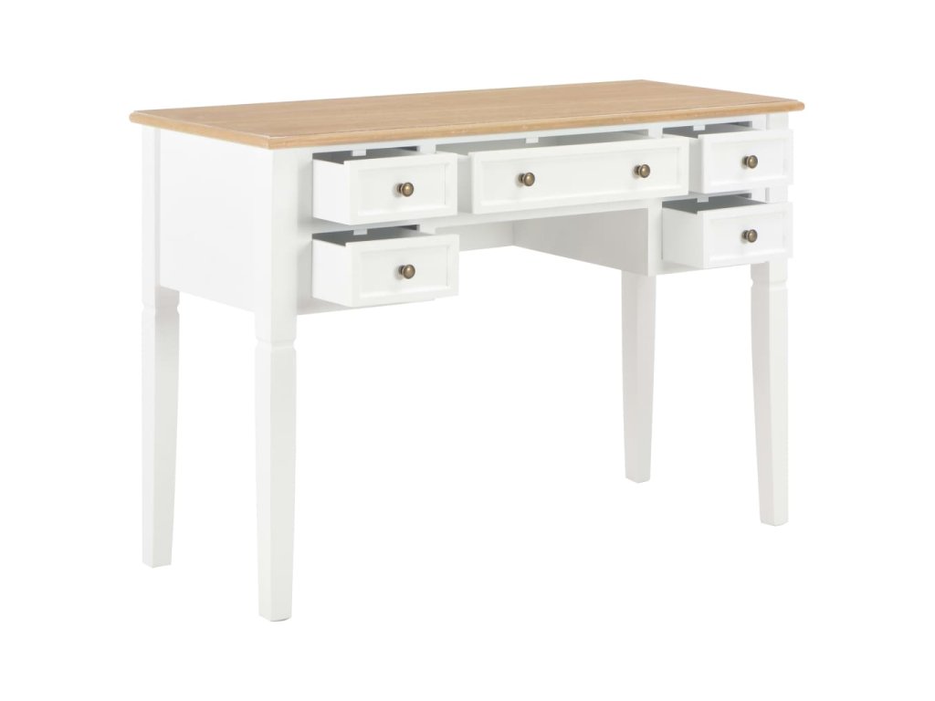 Tento odolný psací stůl má pět velkých zásuvek na psací potřeby, které vám poskytnou dost místa na uložení a uspořádání vašich složek, papírů, dokumentů a dalších kancelářských potřeb. Stolní deska navíc nabízí velký prostor na umístění dekoračních předmětů a dalších osobních věcí.