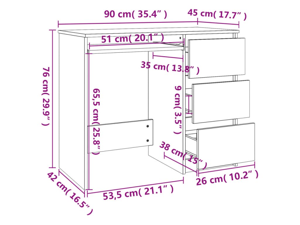 Psací stůl je vyrobený z kvalitních desek, které mu zaručují pevnost, dobrou odolnost a dlouhou životnost. Na délku měří 90 cm, nezabírá tedy příliš místa a hodí se do dětských nebo studentských pokojů. Můžete ho klidně postavit i do rohu. Design se zásuvkami rozšiřuje úložnou kapacitu stolu, takže si v něm můžete přehledně uspořádat různé složky, knihy a další potřeby. K čištění a údržbě vám postačí navlhčený hadřík.