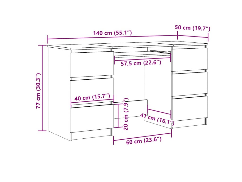 Počítačový stůl je vyrobený z kvalitního kompozitního dřeva, je tudíž robustní, odolný a vydrží vám dlouho sloužit. Skvěle se hodí do menších kanceláří, na kolej, do bytů s omezeným prostorem nebo zkrátka všude, kde chcete co nejefektivněji využít dostupné místo. Najdete v něm také 6 prostorným zásuvek na ukládání knih a dokumentů.