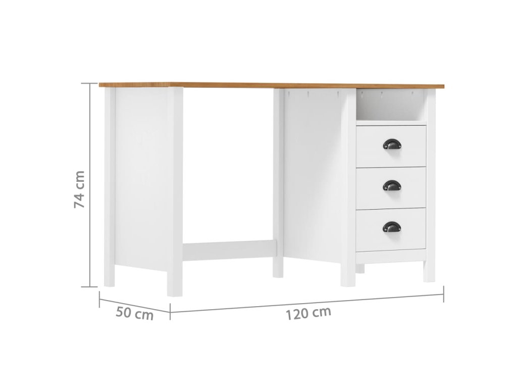 Tento počítačový stůl je vyrobený z masivního borového dřeva, takže vám vydrží sloužit celou řadu let. Má 3 zásuvky a 1 police a poskytne vám dostatek úložného prostoru pro vaše dokumenty, složky, knihy a další náležitosti. Dřevěný psací stůl se snadno čistí a udržuje.