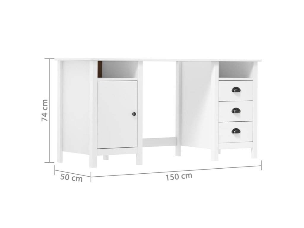 Psací stůl je zhotoven z masivního borového dřeva, je tedy stabilní a bytelný. Studijní stůl je vybaven 3 zásuvkami s úchytkami ve tvaru mušle, 2 přihrádkami a 1 dvířky. Poskytuje také dostatek úložného prostoru, takže si můžete vystavit nebo přehledně uložit jakékoli předměty.