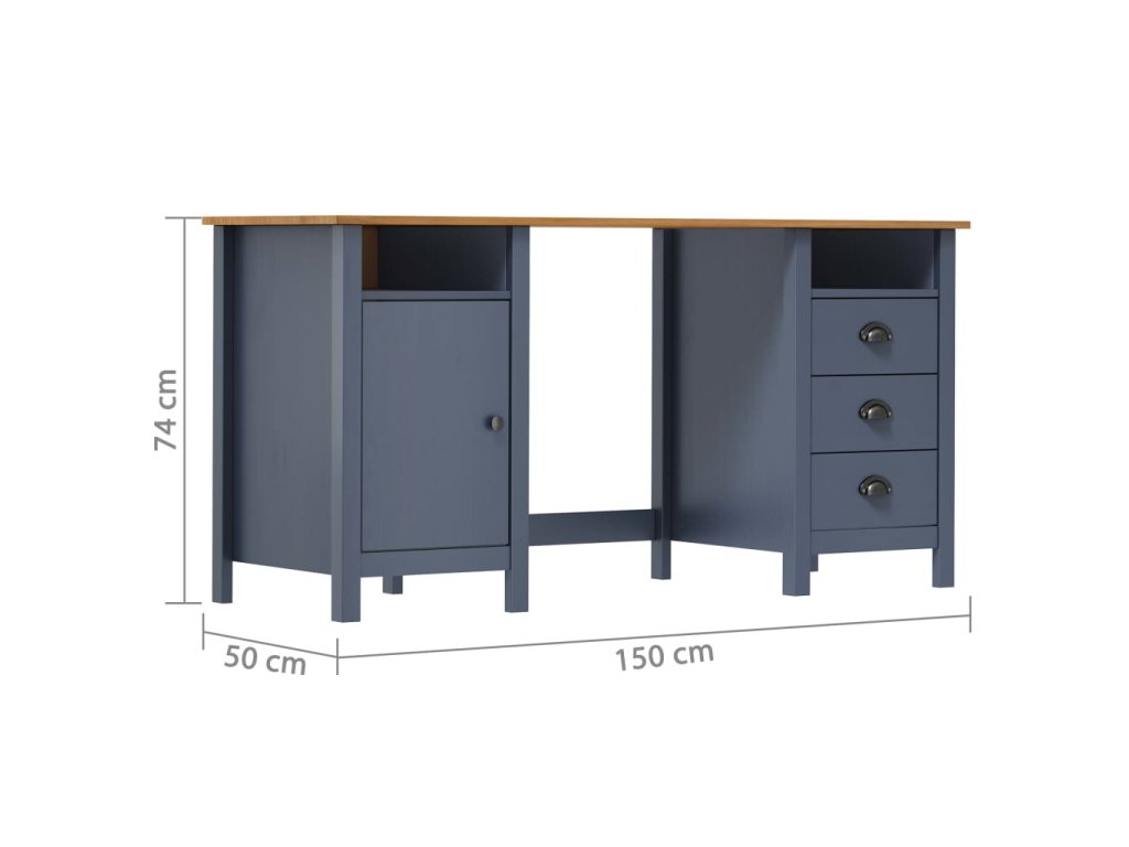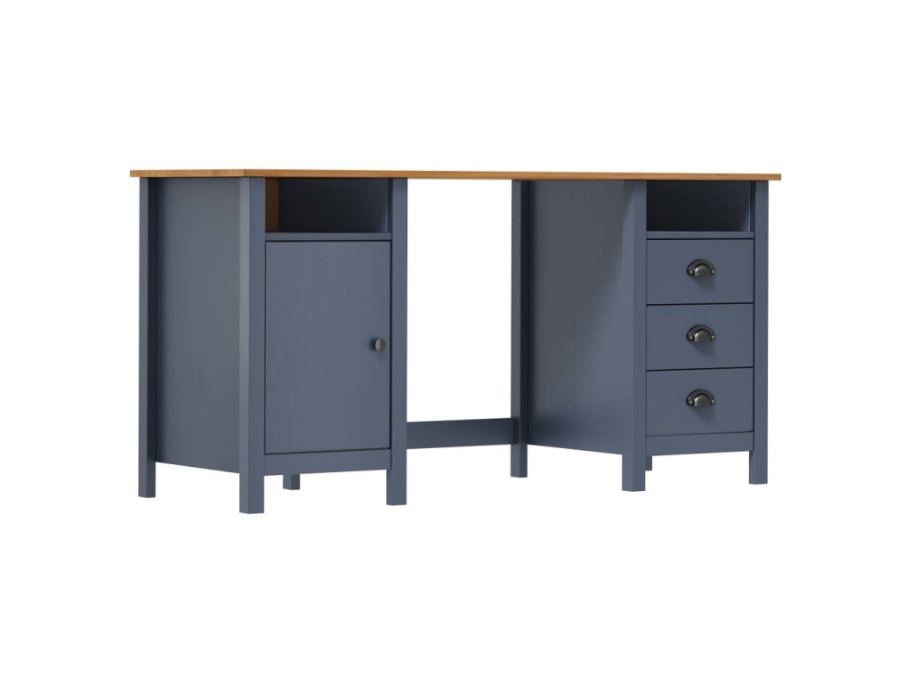 Psací stůl je zhotoven z masivního borového dřeva, je tedy stabilní a bytelný. Studijní stůl je vybaven 3 zásuvkami s úchytkami ve tvaru mušle, 2 přihrádkami a 1 dvířky. Poskytuje také dostatek úložného prostoru, takže si můžete vystavit nebo přehledně uložit jakékoli předměty.