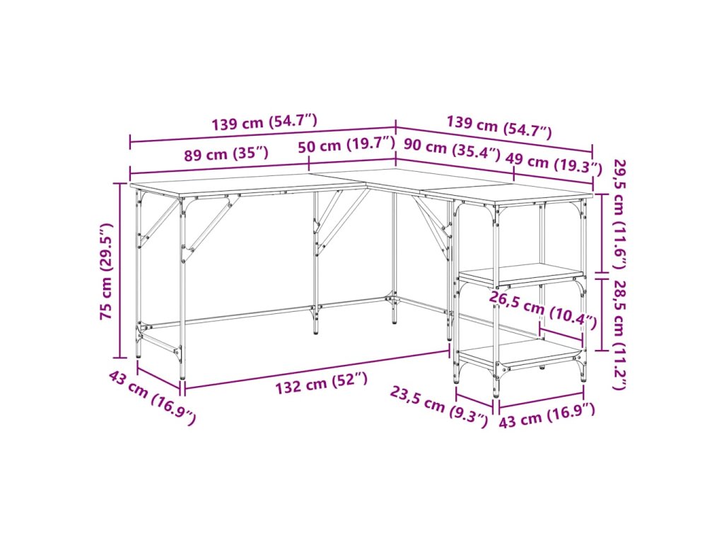 - Design ve tvaru L: Psací stůl má tvar písmene L, takže se snadno vejde do jakéhokoli rohu a maximálně využije váš omezený prostor.
