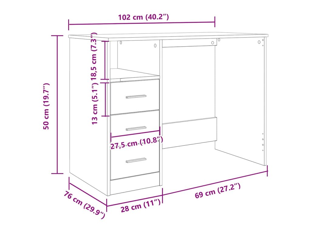 - Dostatek úložného prostoru: Velká pracovní plocha kancelářského stolu poskytuje dostatek prostoru pro umístění počítače, notebooku, rámečků s fotografiemi, dekorativních předmětů, rostlin v květináčích apod. Do 3 zásuvek můžete umístit knihy, složky a dokumenty.
