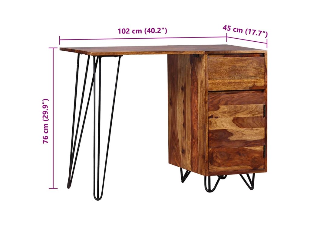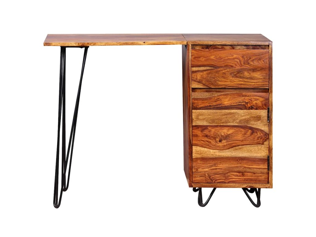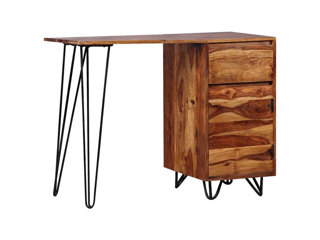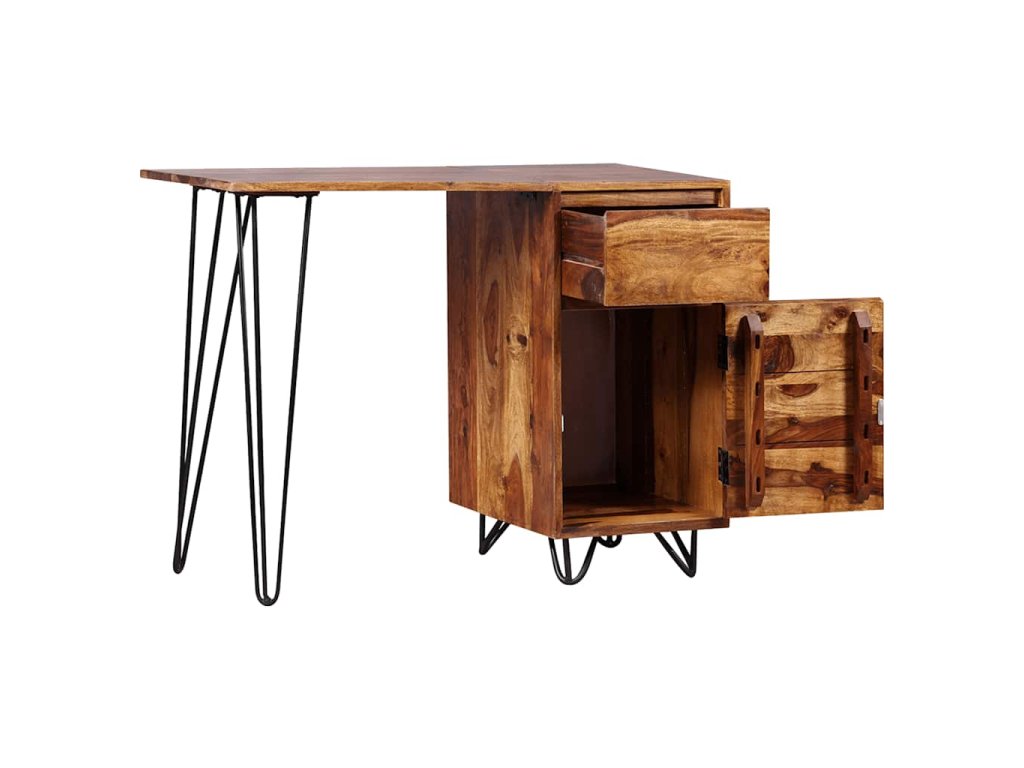 Psací stůl se může pochlubit nevšedním, industriálně laděným retro provedením. Je přitom vyroben ze akáciového masivu. Akácie, také známý jako palisandr či růžové dřevo, je tvrdé dřevo z tropů, které je proslavené svými zrny. Stůl disponuje velkou skříňkou a 1 zásuvkou, které pojmou všechny vaše složky, papíry, dokumenty a psací potřeby. Na desku stolu si navíc můžete vystavit dekorace či osobní předměty. Pevné nohymu pak dodávají na stabilitě a podtrhují jeho industriální vzhled. Celý stůl je ručně vyráběný, což v kombinaci s krásnými zrny činí každý kousek jedinečný a lehce odlišný od všech ostatních. Montáž je velmi snadná.