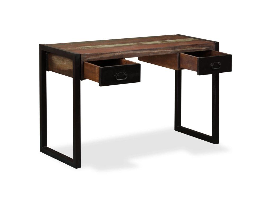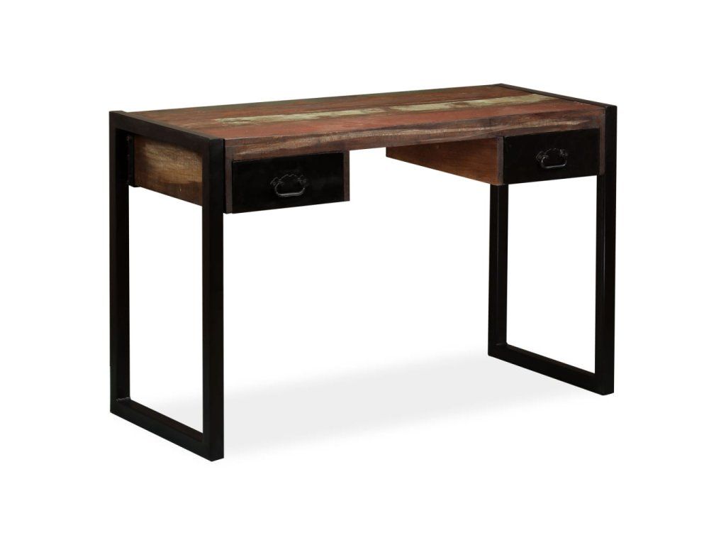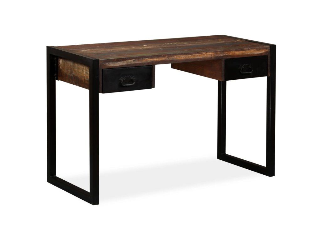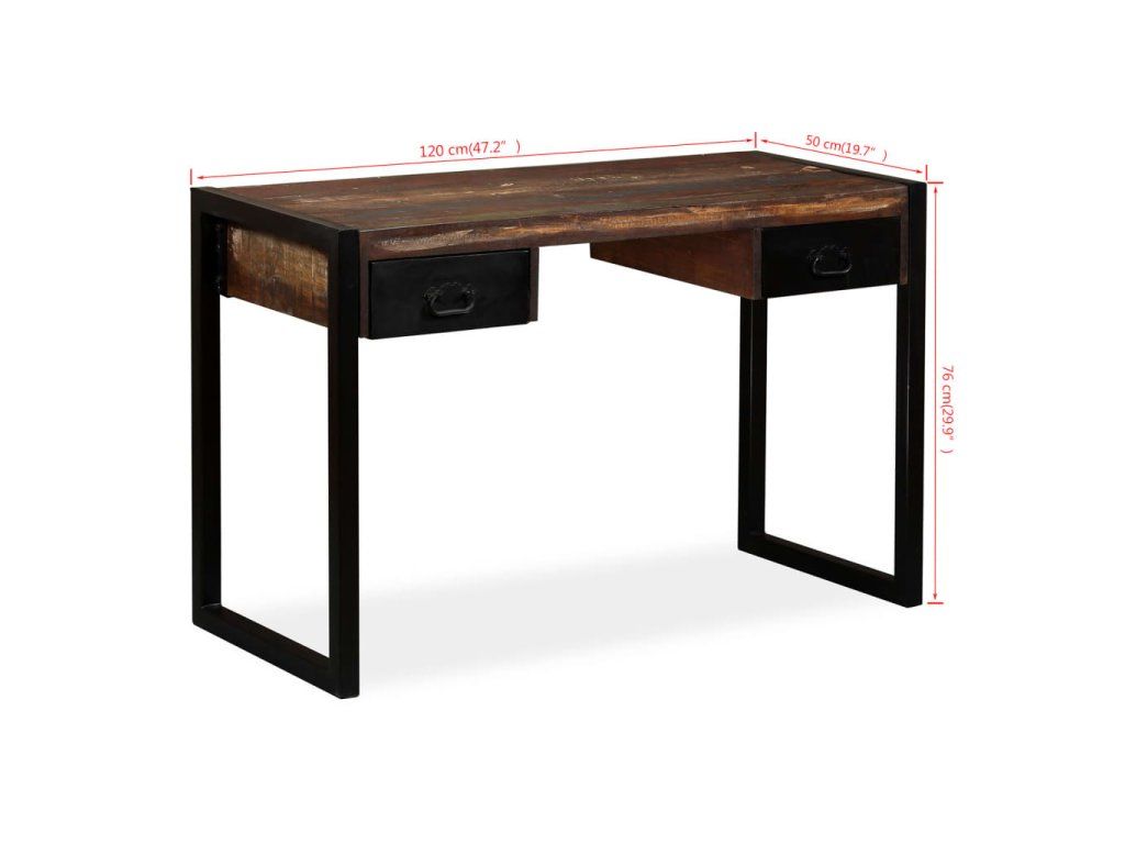 Náš dřevěný psací stůl v industriálním stylu vyzařuje vintage šarm a je perfektním nadčasovým doplňkem do vaší domácnosti. Má dvě zásuvky, které vám poskytnou dostatek místa pro ukládání menších předmětů, jako jsou klíče, zápisníčky a další drobnosti. Stůl lze rovněž použít jako odkládací či konzolový stolek.