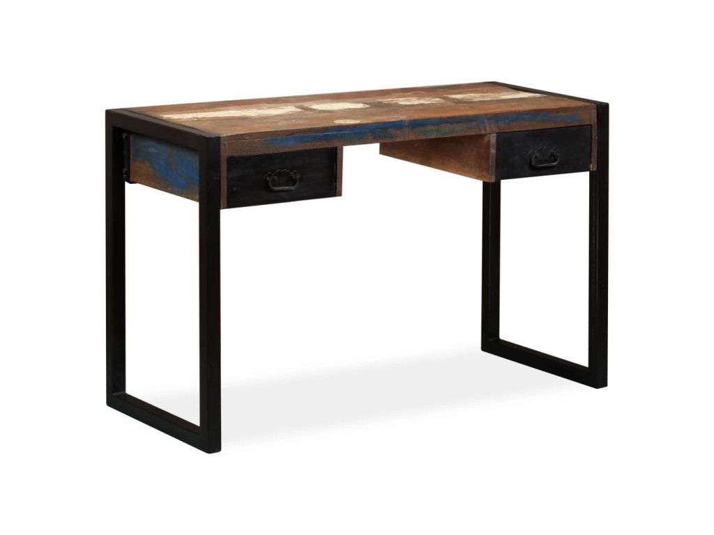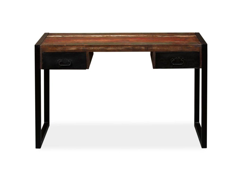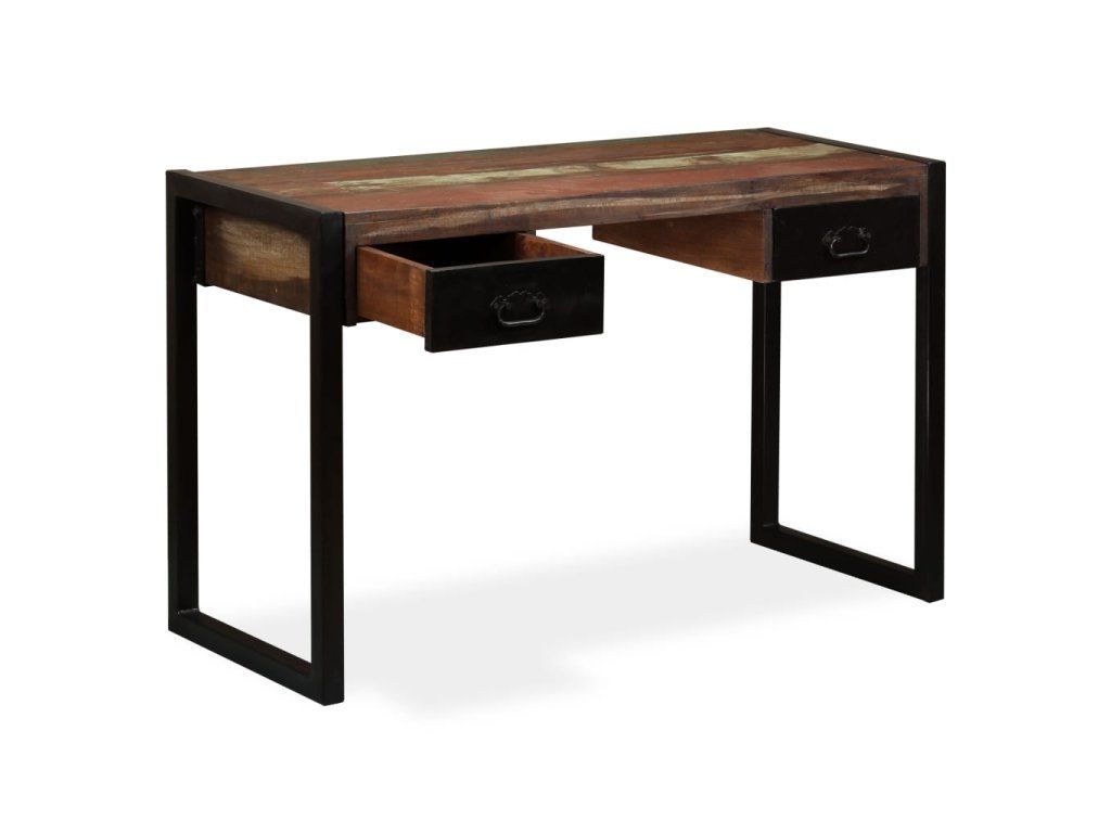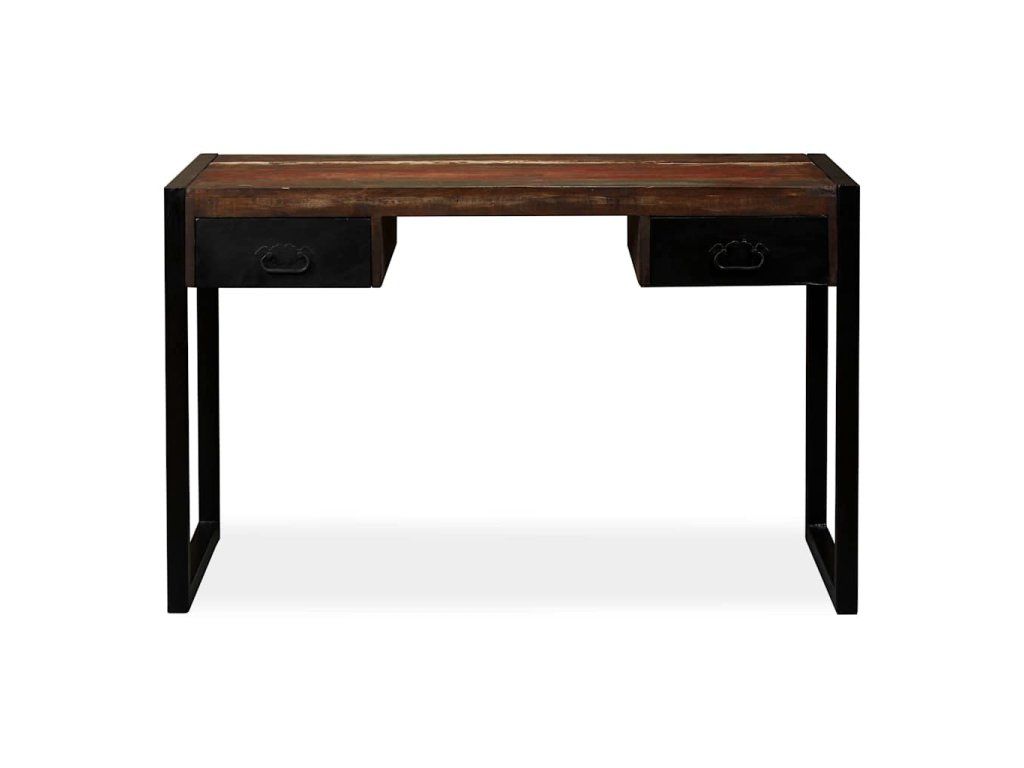 Náš dřevěný psací stůl v industriálním stylu vyzařuje vintage šarm a je perfektním nadčasovým doplňkem do vaší domácnosti. Má dvě zásuvky, které vám poskytnou dostatek místa pro ukládání menších předmětů, jako jsou klíče, zápisníčky a další drobnosti. Stůl lze rovněž použít jako odkládací či konzolový stolek.