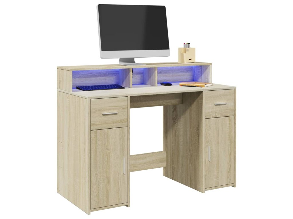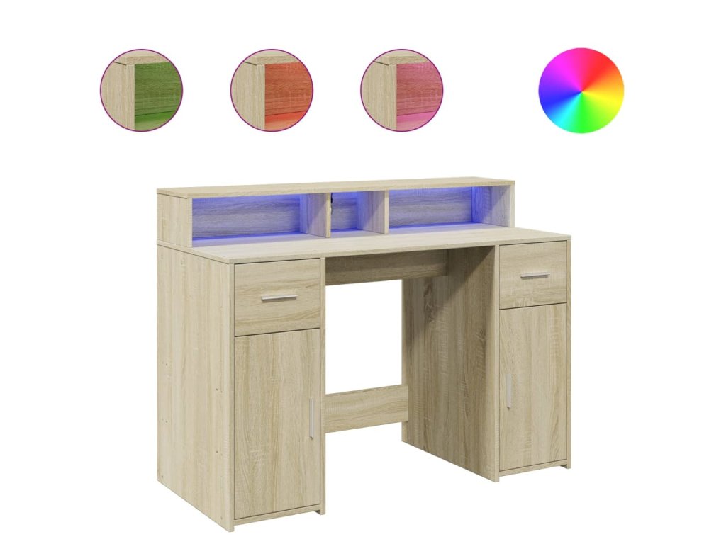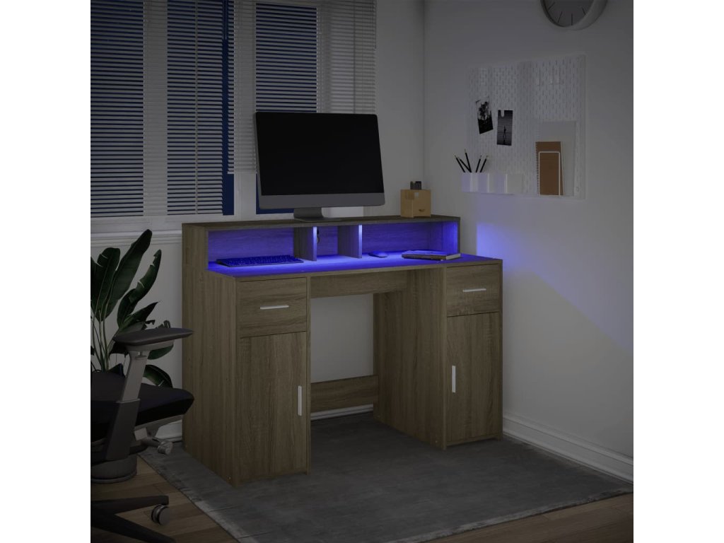 Tento psací stůl s velkým úložným prostorem, odolnou konstrukcí a LED osvětlením je ideální pro vytvoření organizovaného a stylového pracovního nebo herního prostoru.