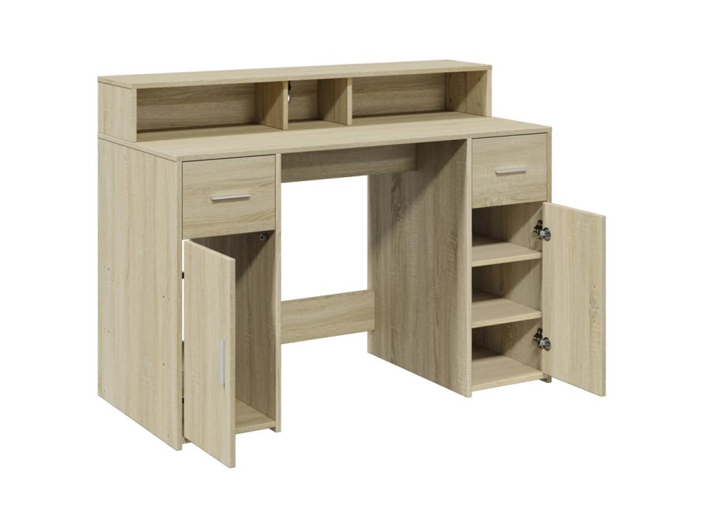 - Dostatek úložného prostoru: Psací stůl je vybaven přihrádkami a zásuvkami, které nabízejí rozsáhlé možnosti ukládání všech kancelářských potřeb a pomáhají udržet váš pracovní prostor organizovaný a bez nepořádku.