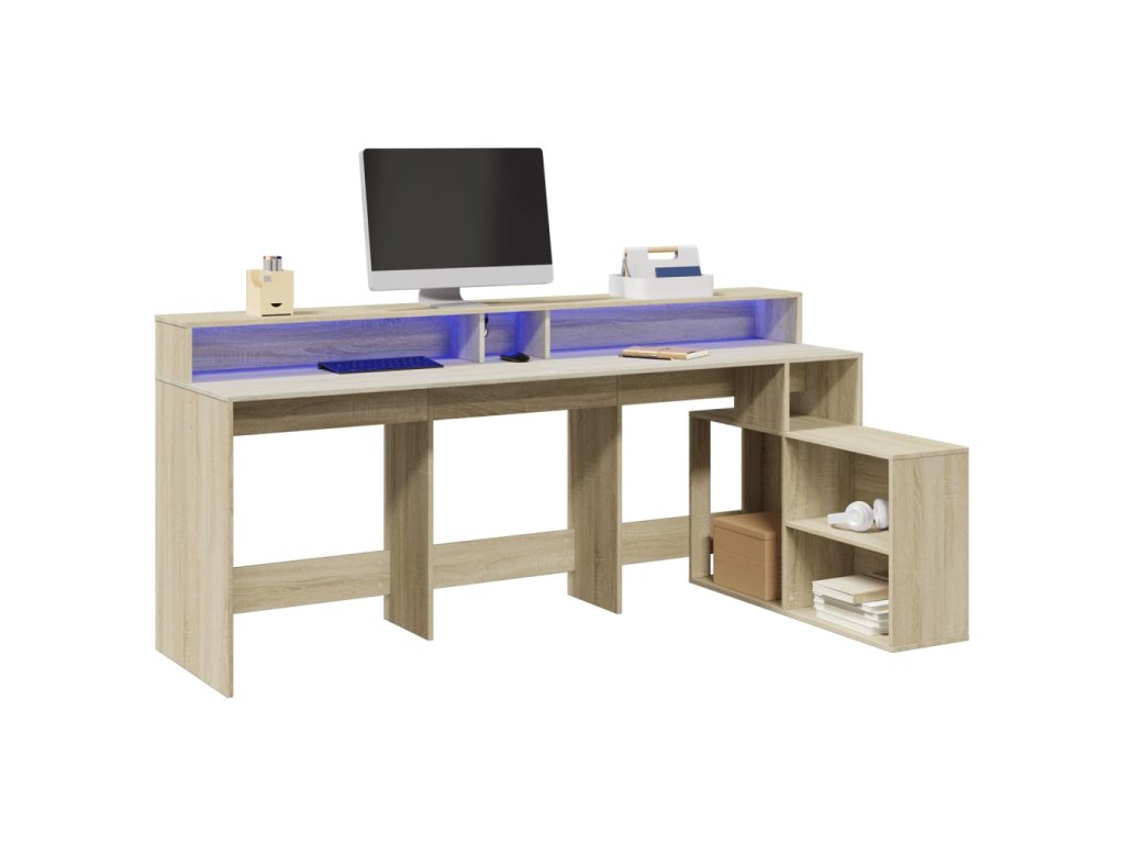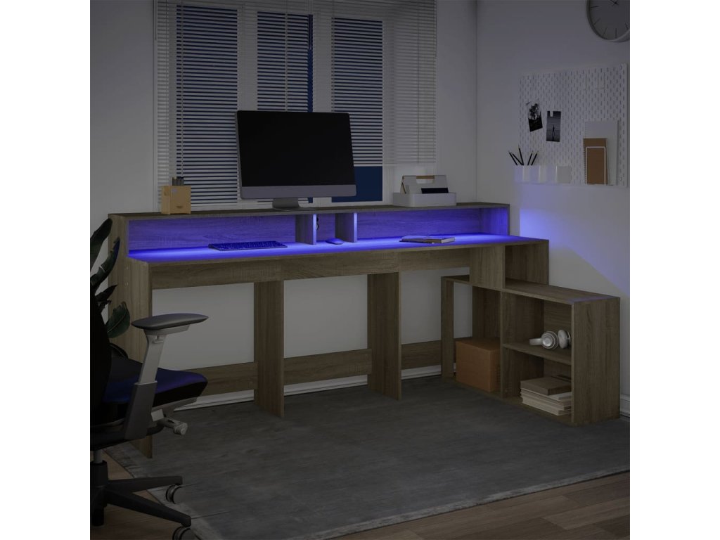 Tento psací stůl s velkým úložným prostorem, odolnou konstrukcí a LED osvětlením je ideální pro vytvoření organizovaného a stylového pracovního nebo herního prostoru.