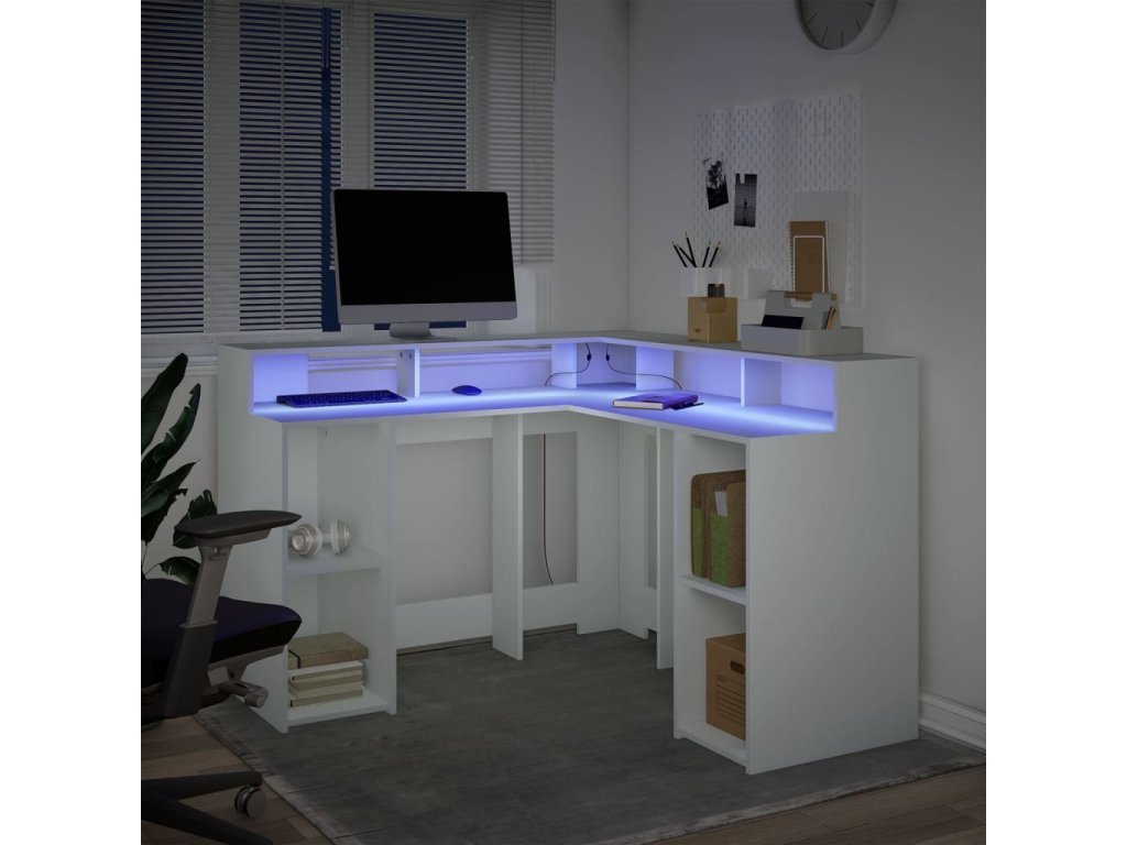Tento psací stůl s velkým úložným prostorem, odolnou konstrukcí a LED osvětlením je ideální pro vytvoření organizovaného a stylového pracovního nebo herního prostoru.