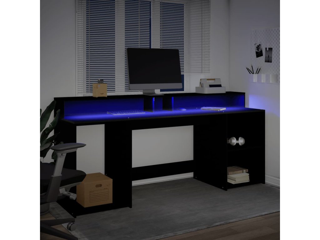 Tento psací stůl s velkým úložným prostorem, odolnou konstrukcí a LED osvětlením je ideální pro vytvoření organizovaného a stylového pracovního nebo herního prostoru.