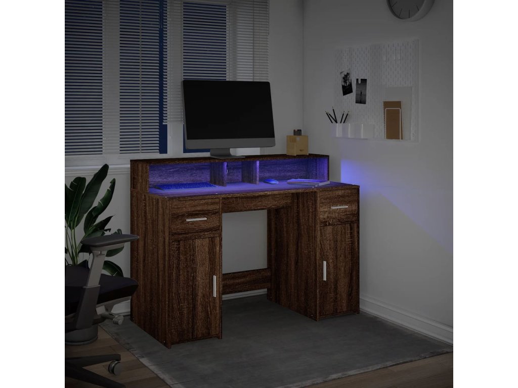 Tento psací stůl s velkým úložným prostorem, odolnou konstrukcí a LED osvětlením je ideální pro vytvoření organizovaného a stylového pracovního nebo herního prostoru.