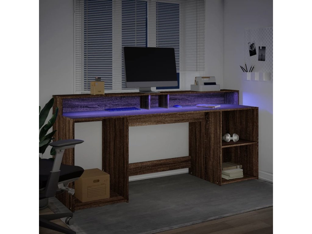 Tento psací stůl s velkým úložným prostorem, odolnou konstrukcí a LED osvětlením je ideální pro vytvoření organizovaného a stylového pracovního nebo herního prostoru.