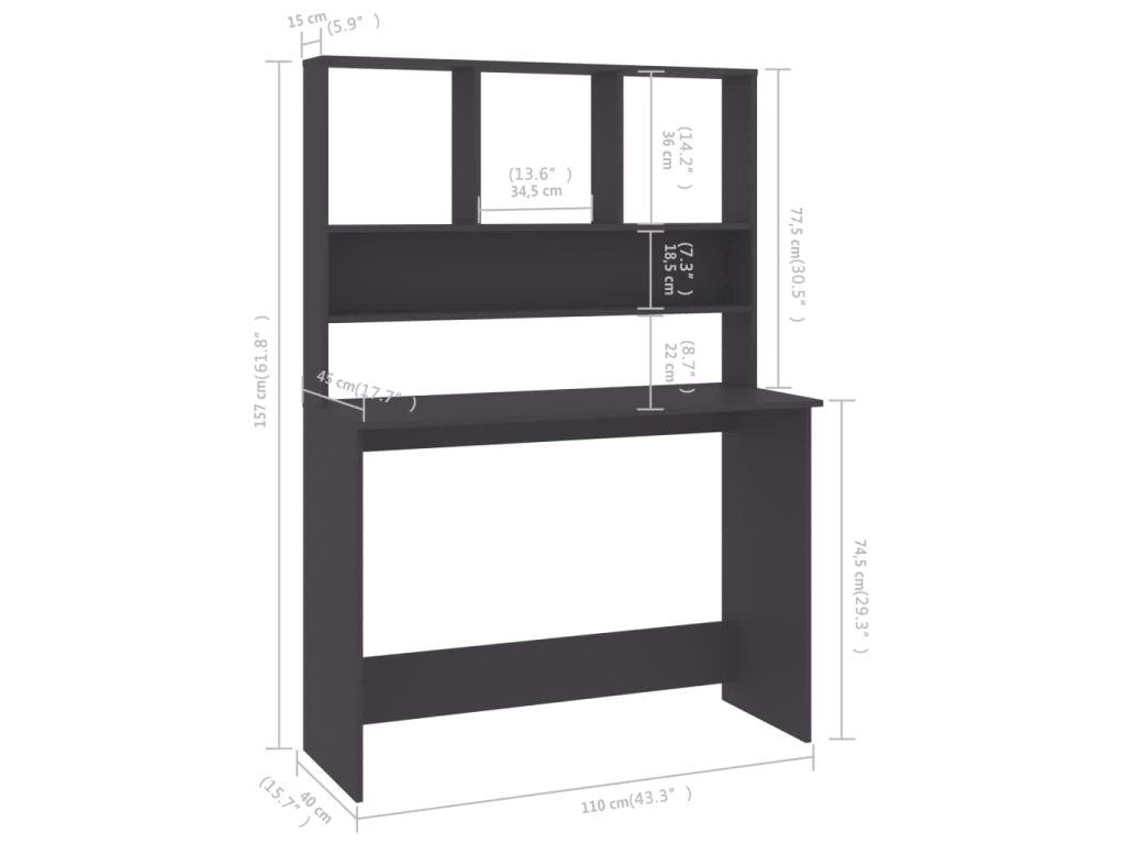 Psací stůl je vyrobený z kvalitní dřevotřísky, která zajišťuje jeho odolnost, bytelnost a dlouhou životnost. Stylové a moderní rozvržení s oddělenými přihrádkami k ukládání a vystavování nejrůznějších věcí je perfektním řešením ke snadnému a přehlednému uspořádání vašich složek, dokumentů, poznámek, PC vybavení a dalších potřeb. Stůl nejen skvěle vypadá, ale je také velice praktický a pomůže vám ušetřit místo, výborně se proto hodí do miniaturních kanceláří, malých domečků a všude tam, kde chcete efektivně využít prostor.