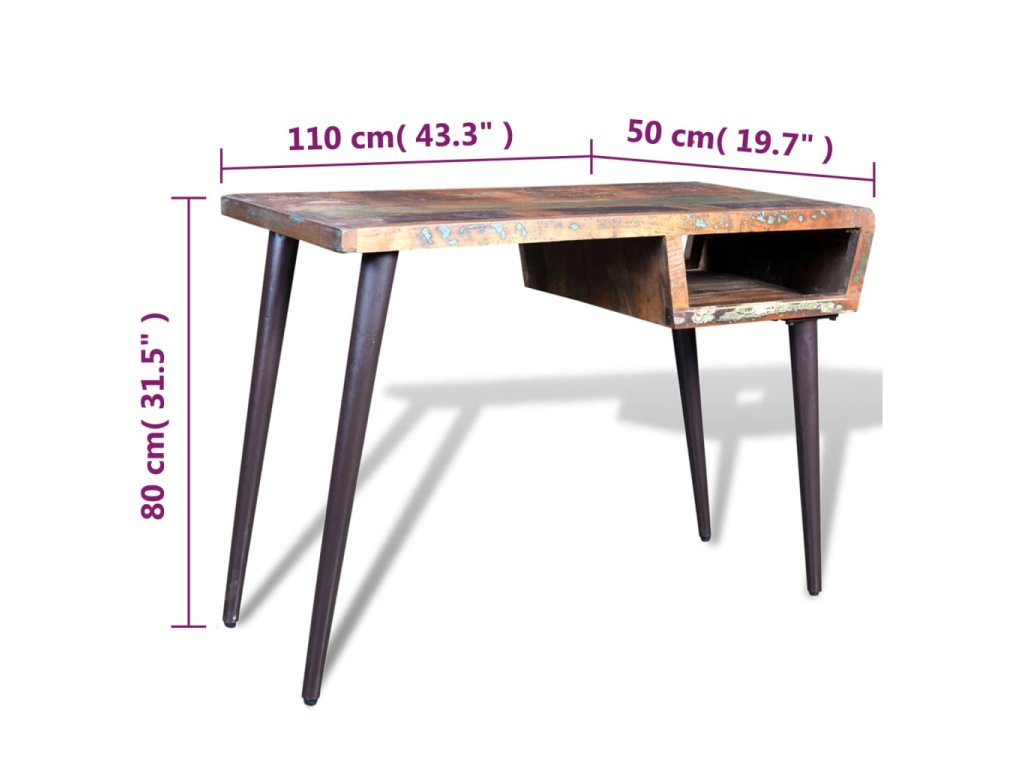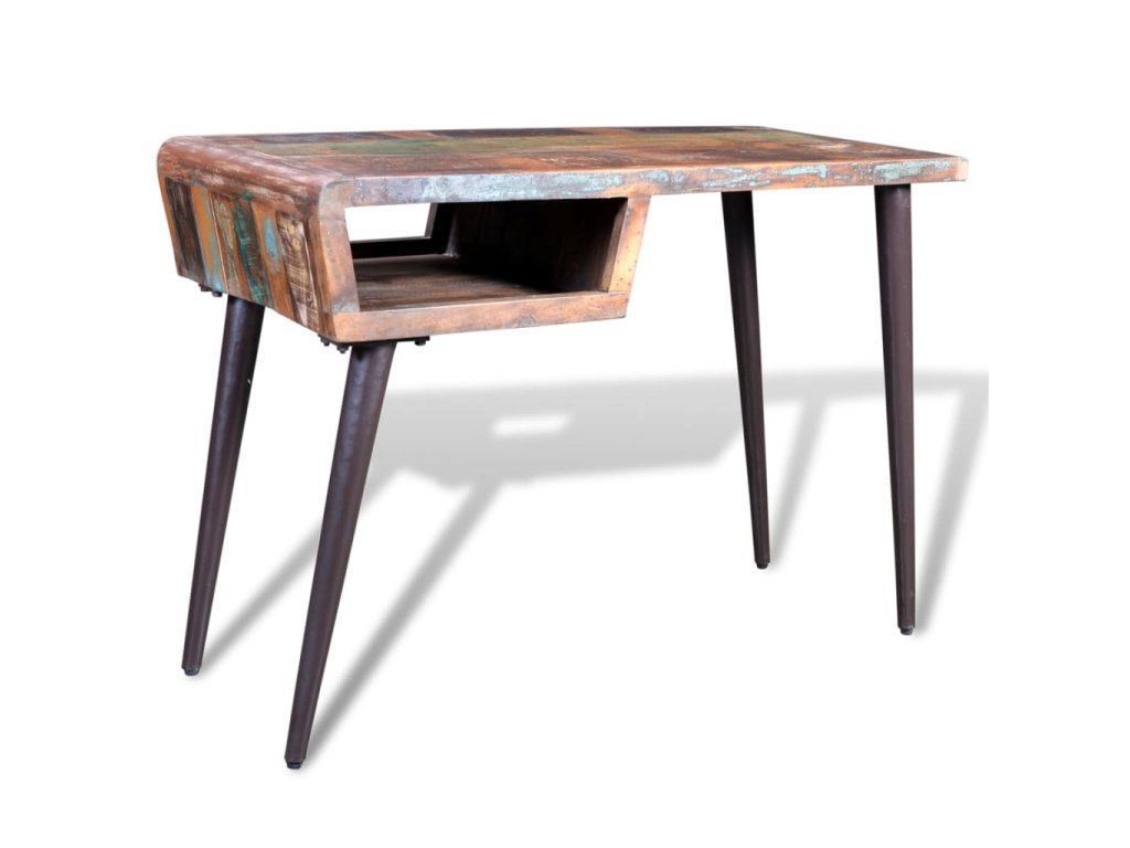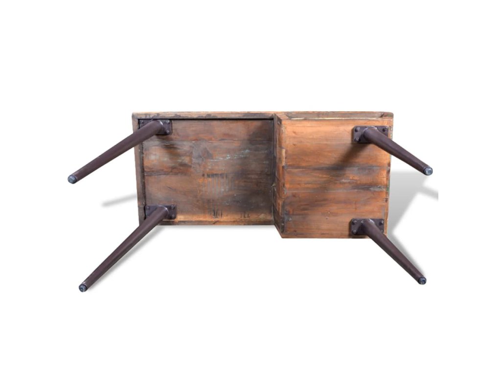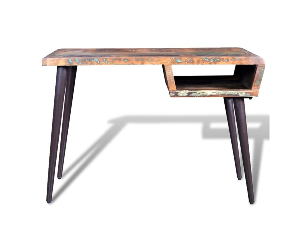 Tento psací stůl s dřevěnou stolní deskou z recyklovaného dřeva a 4 bytelnými železnými nohami má dlouhou životnost a nadčasově doplní vaše bydlení. Masivní dřevěná stolní deska je perfektní plocha pro různé vázy, mísy s ovocem, dekorace a podobě. Pod stolní deskou je přihrádka, která vám nabízí další úložný prostor.