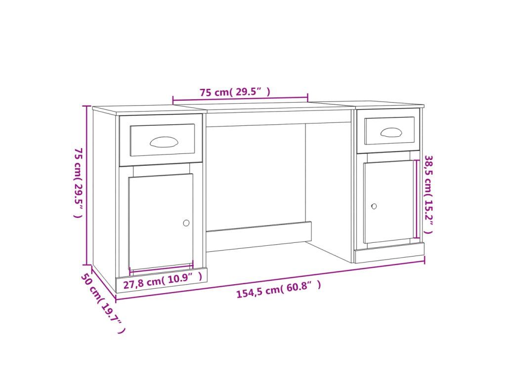 Tento psací stůl se skříňkami dodá vašemu studijnímu nebo pracovnímu prostředí elegantní šarm.
